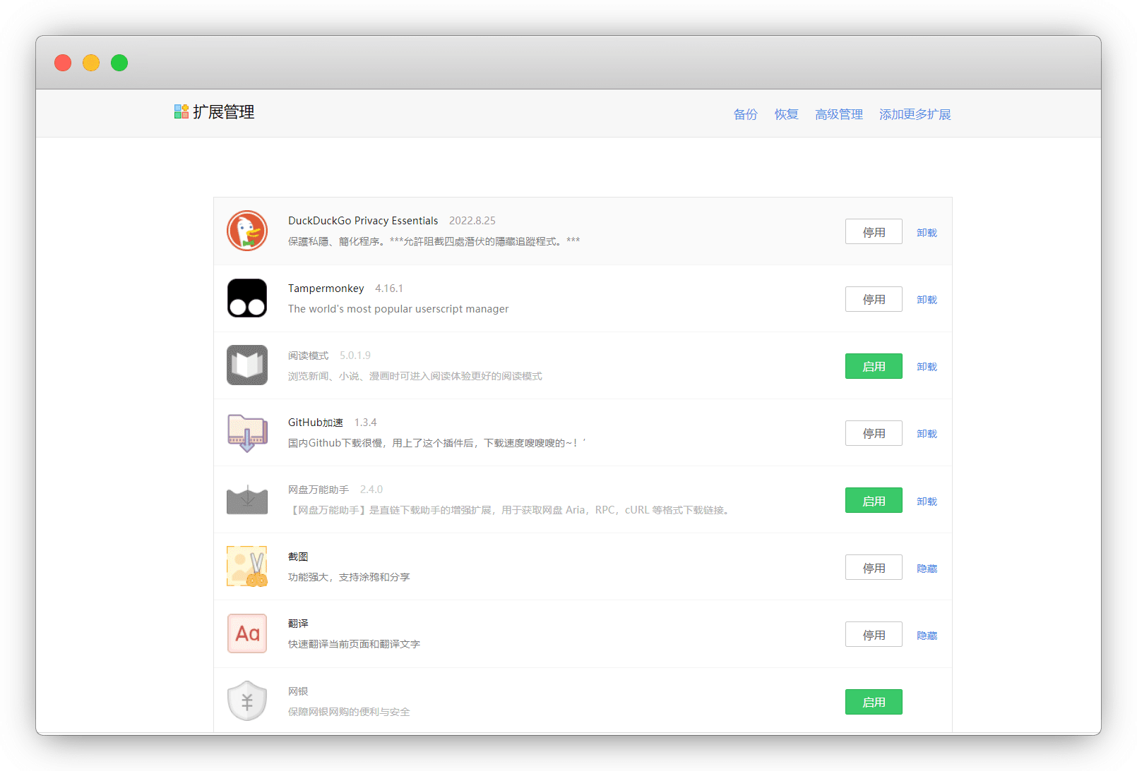 比如我想导出 DuckDuckGo,右上角 高级管理