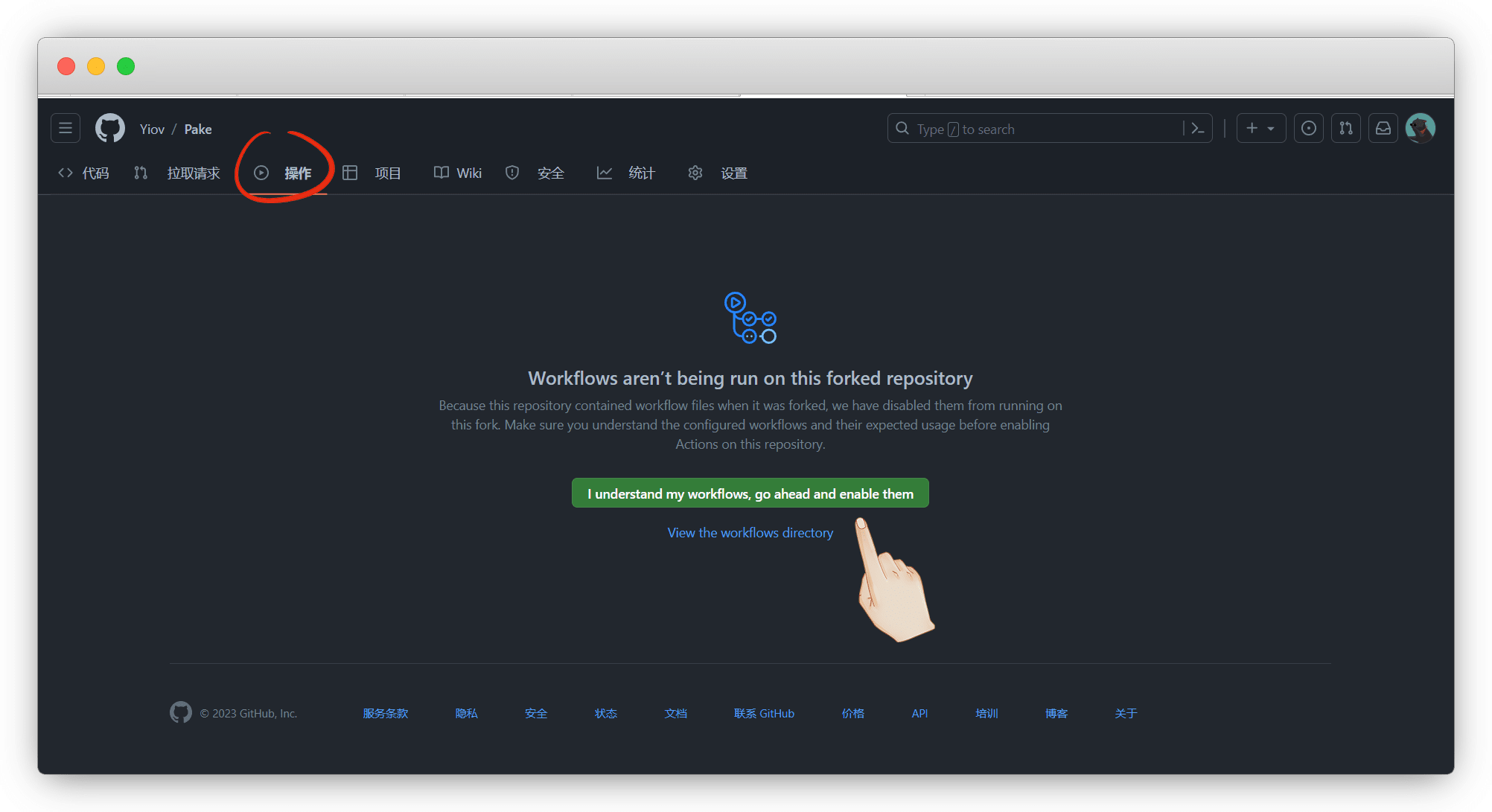 这里我们用GitHub Action,点击 Action ,再点同意条款声明