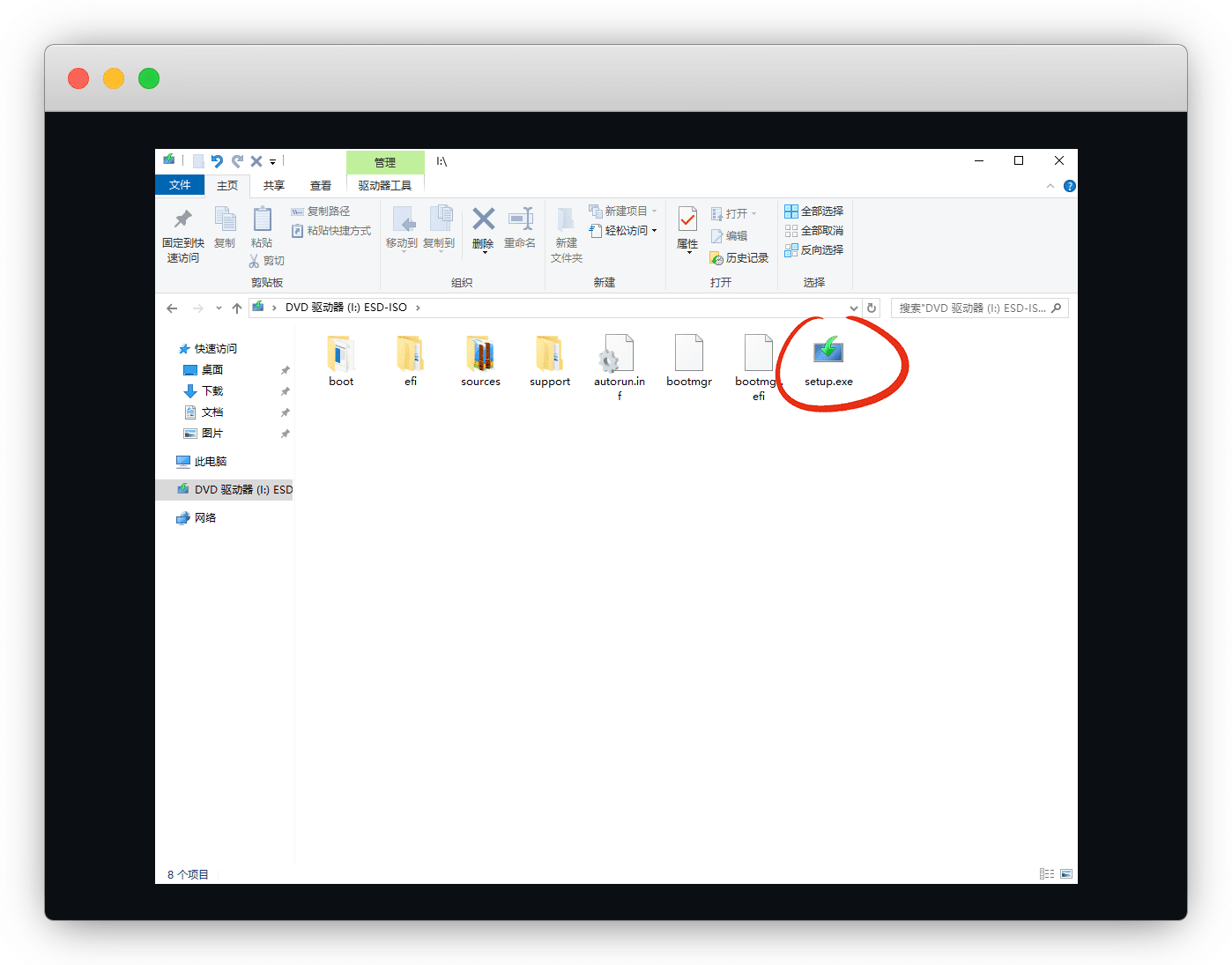 双击打开下载好的ISO文件,然后再双击 setup.exe