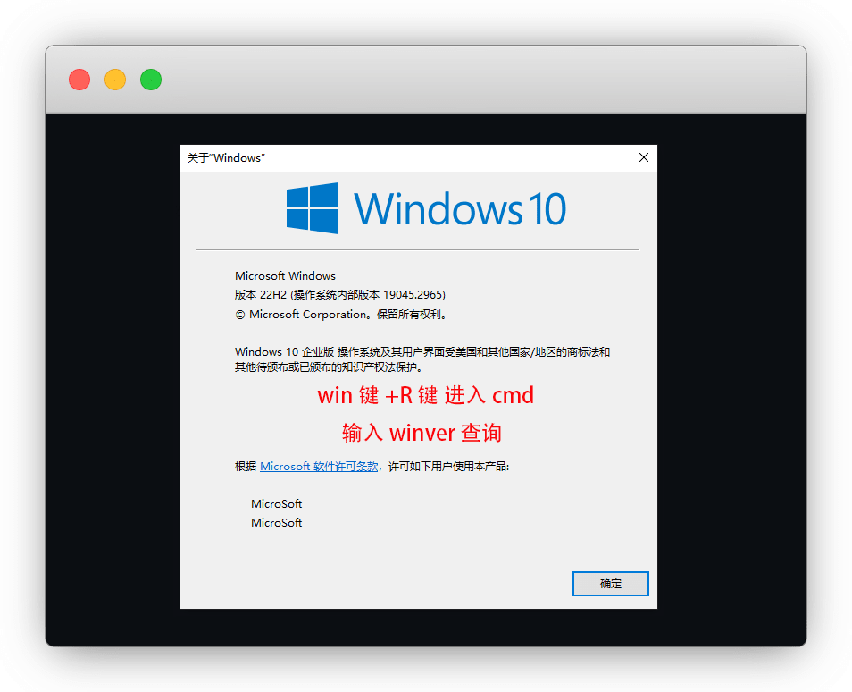 win键+R键调出cmd,输入 winver 即可查询系统版本
