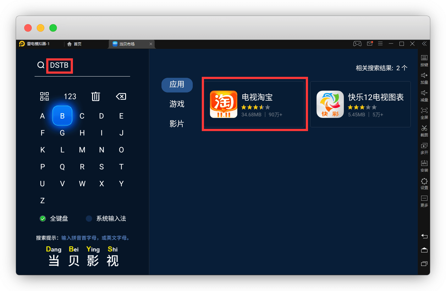 然后进去当贝搜索 DSTB(电视淘宝的开头首字母),安装