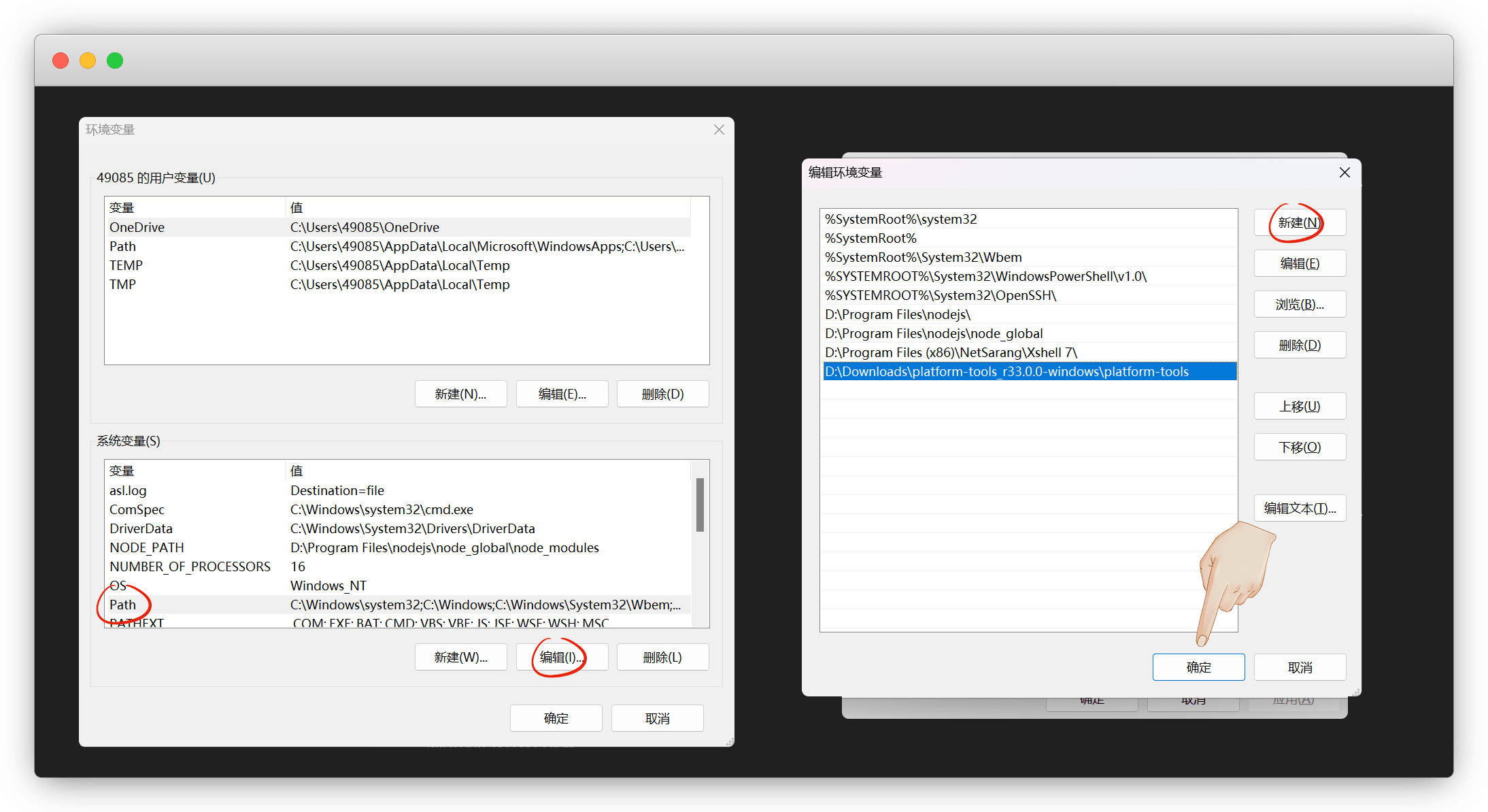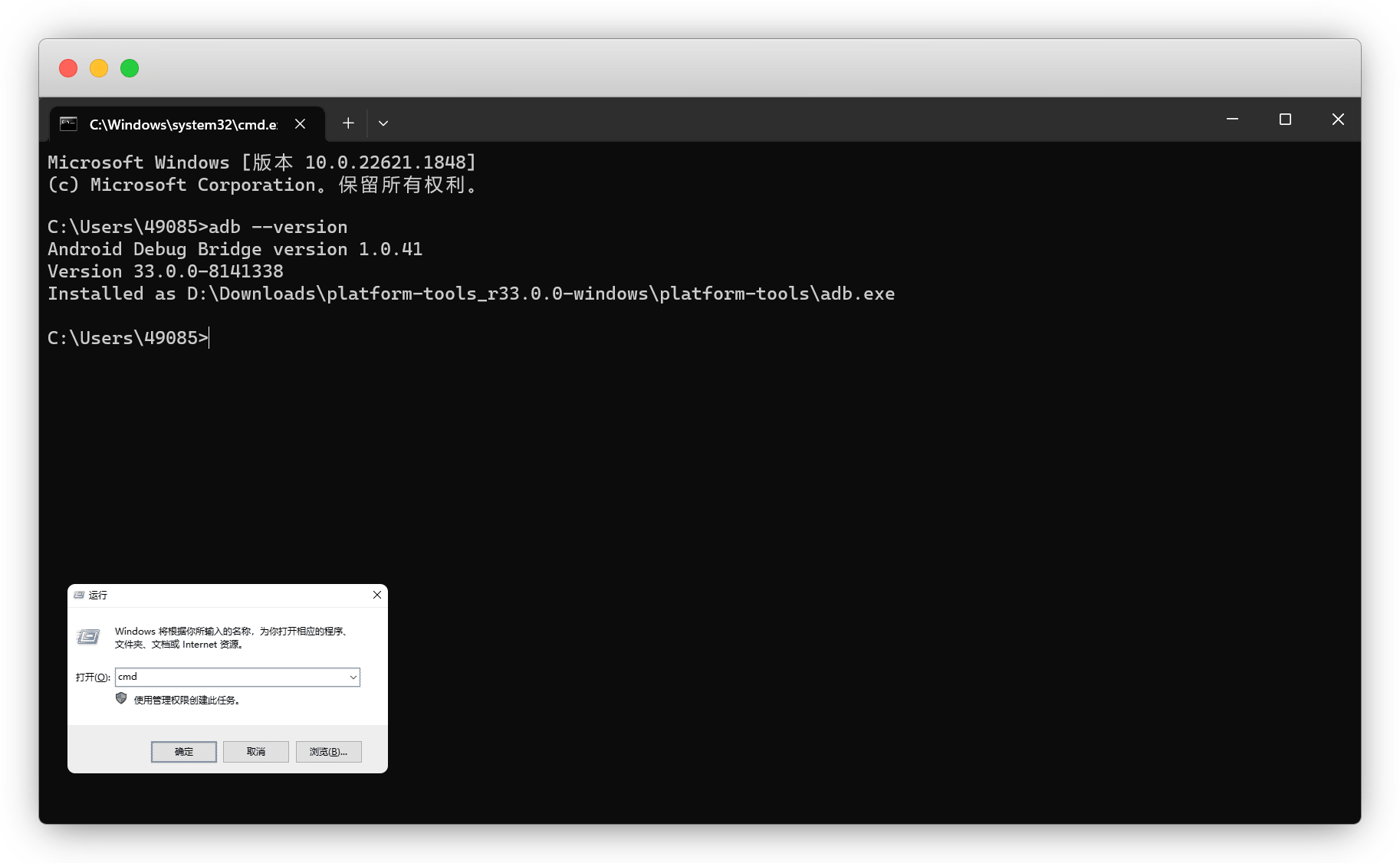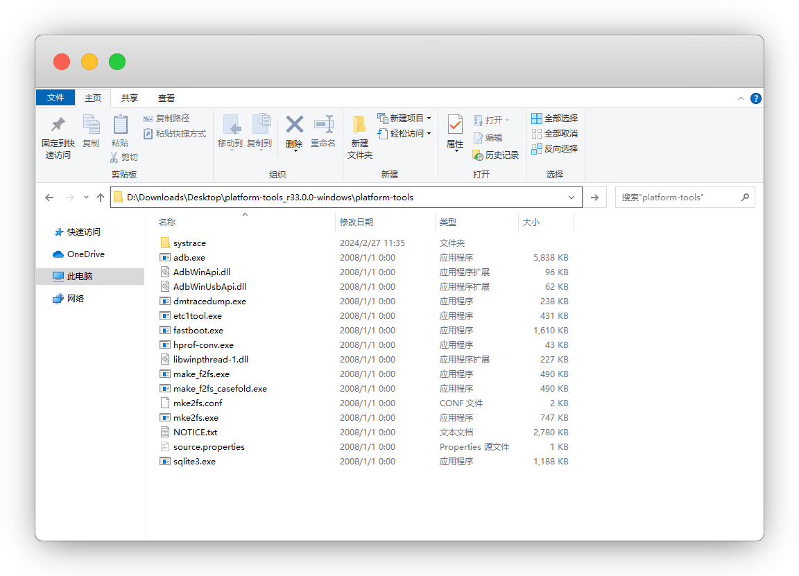 我的ADB解压路径为:D:\Downloads\Desktop\platform-tools_r33.0.0-windows\platform-tools