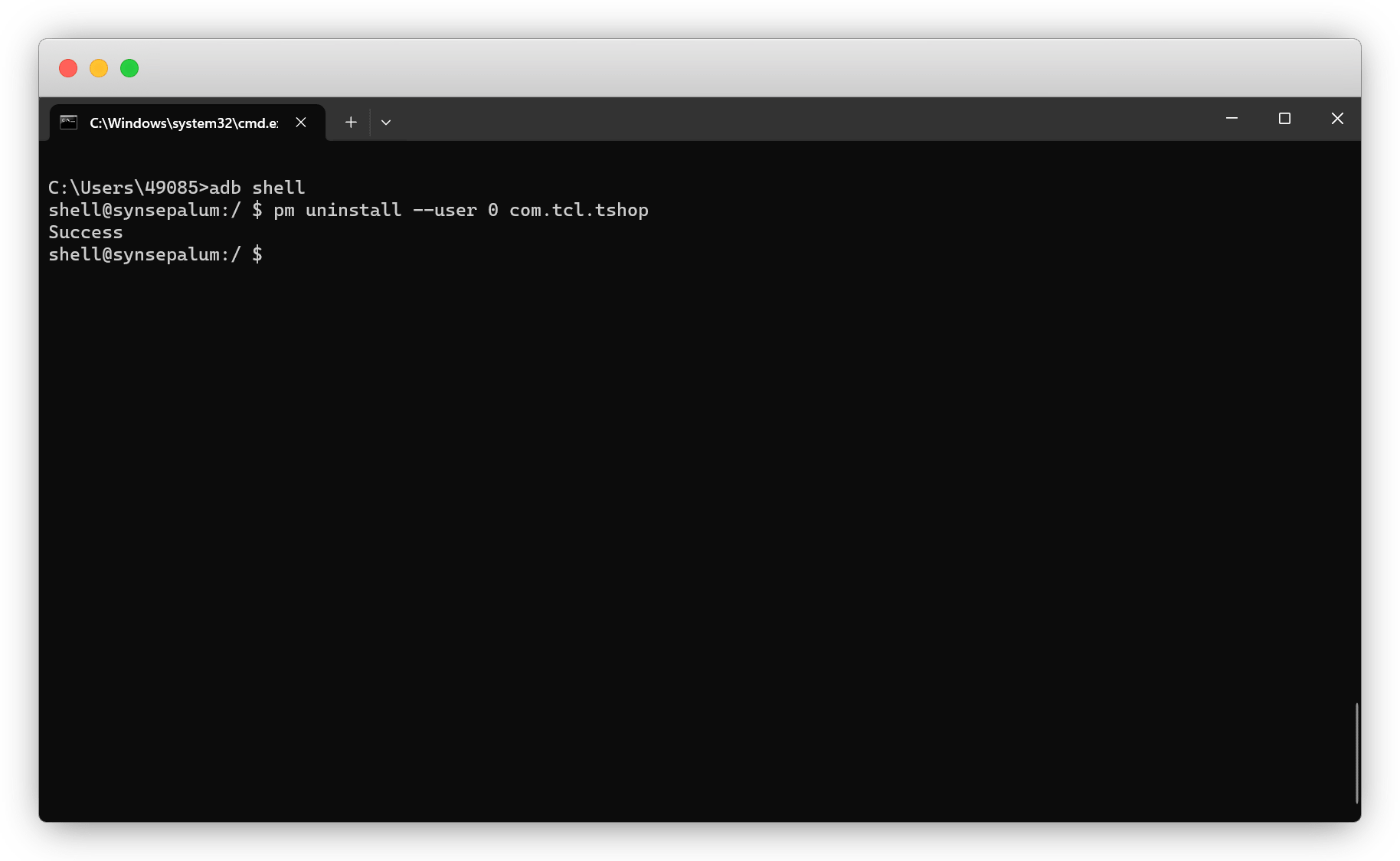pm uninstall --user 0 com.tcl.tshop #卸载T商店