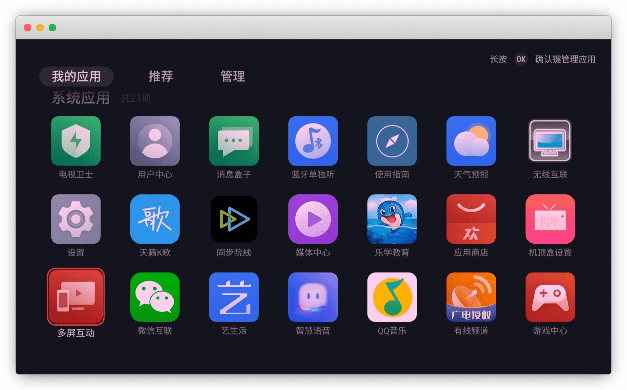 电视TV的系统也是安卓,后缀格式也是apk,苹果请使用Apple TV盒子