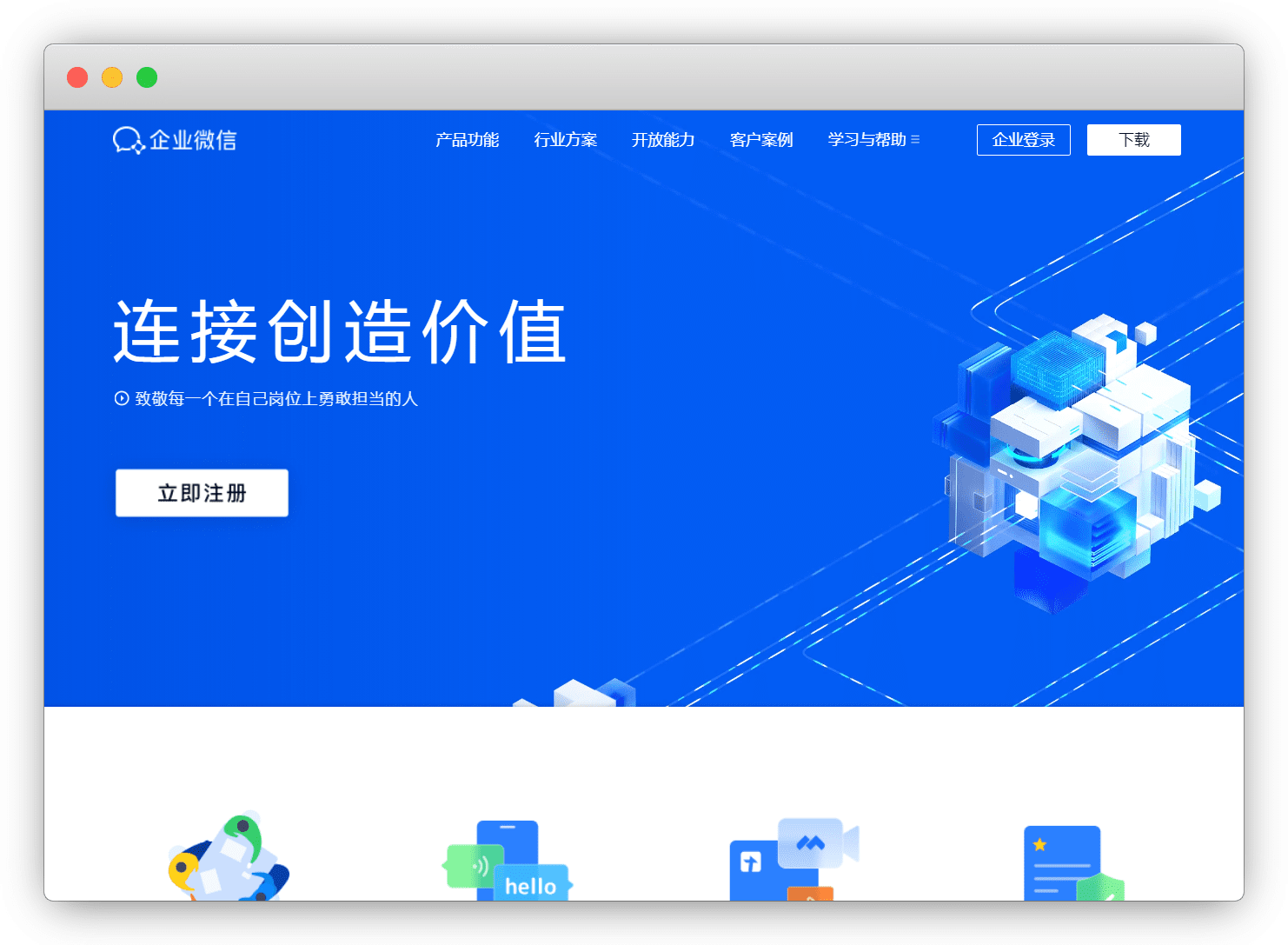 在 企业微信官网,点击 ⽴即注册