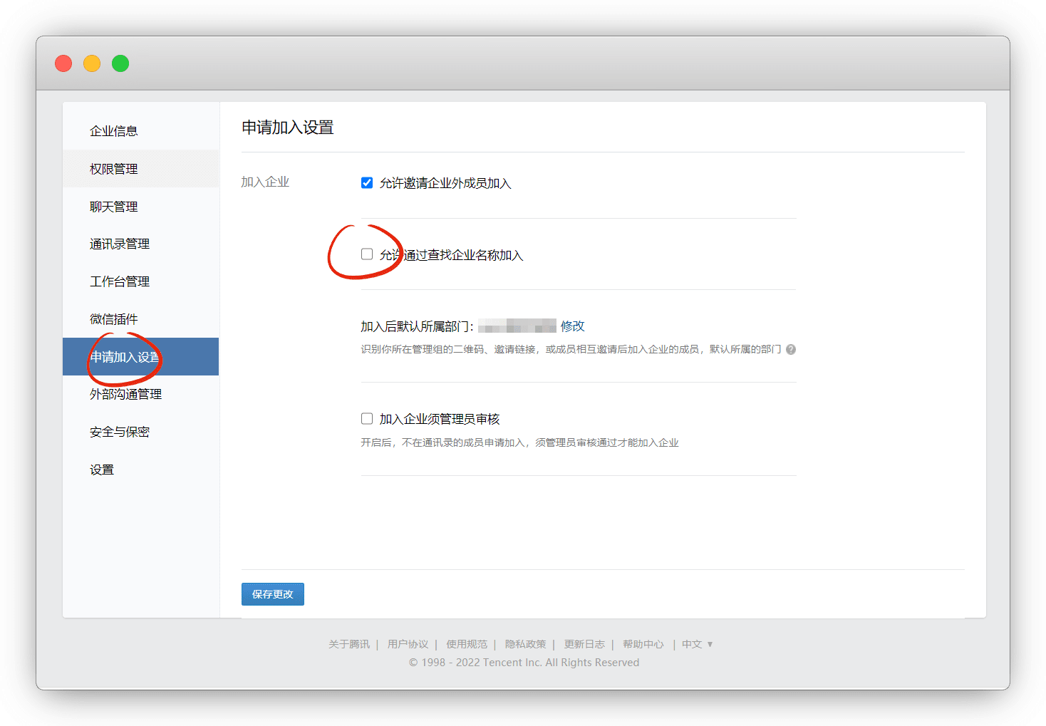如果不想别人乱加,可以开启 加入企业管理员审核