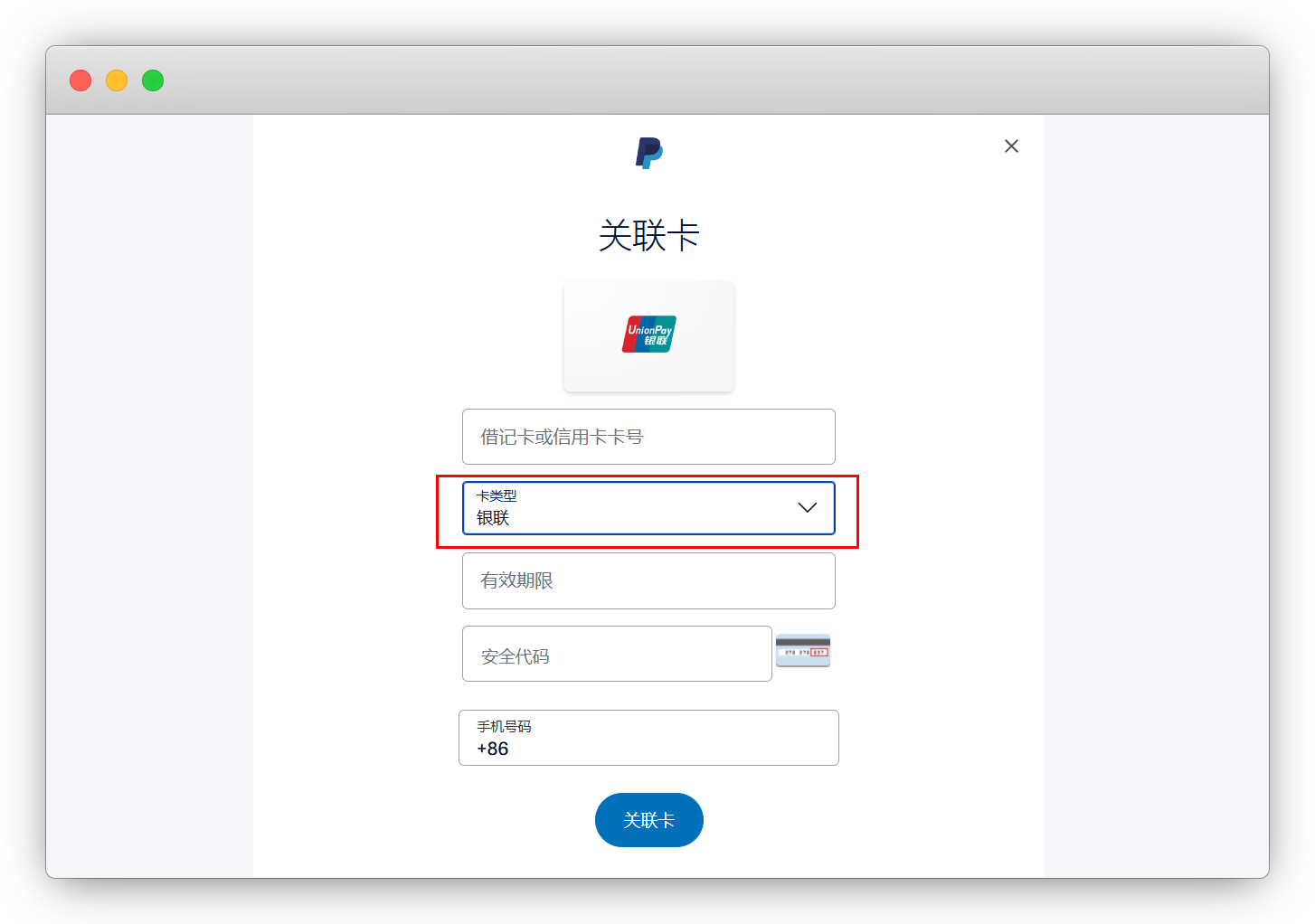 关联卡没有visa或mastercard,选择银联卡,储蓄卡或信用卡都行