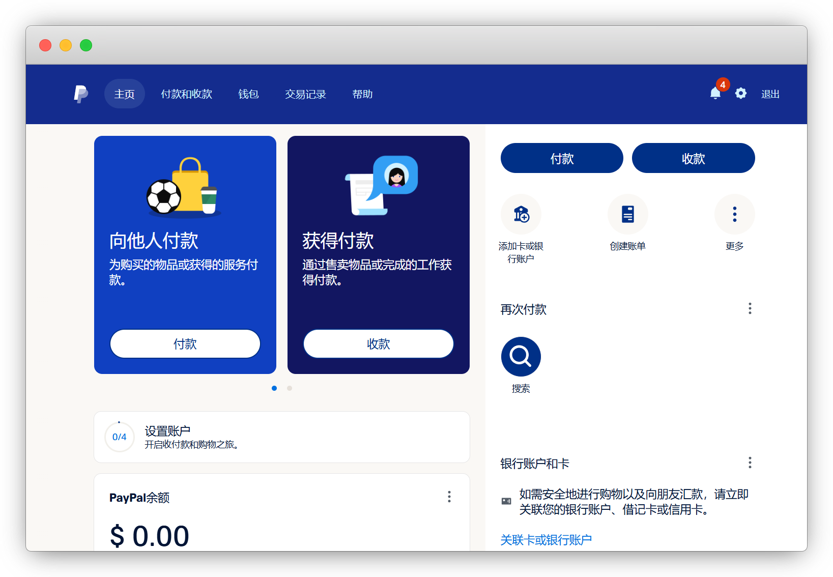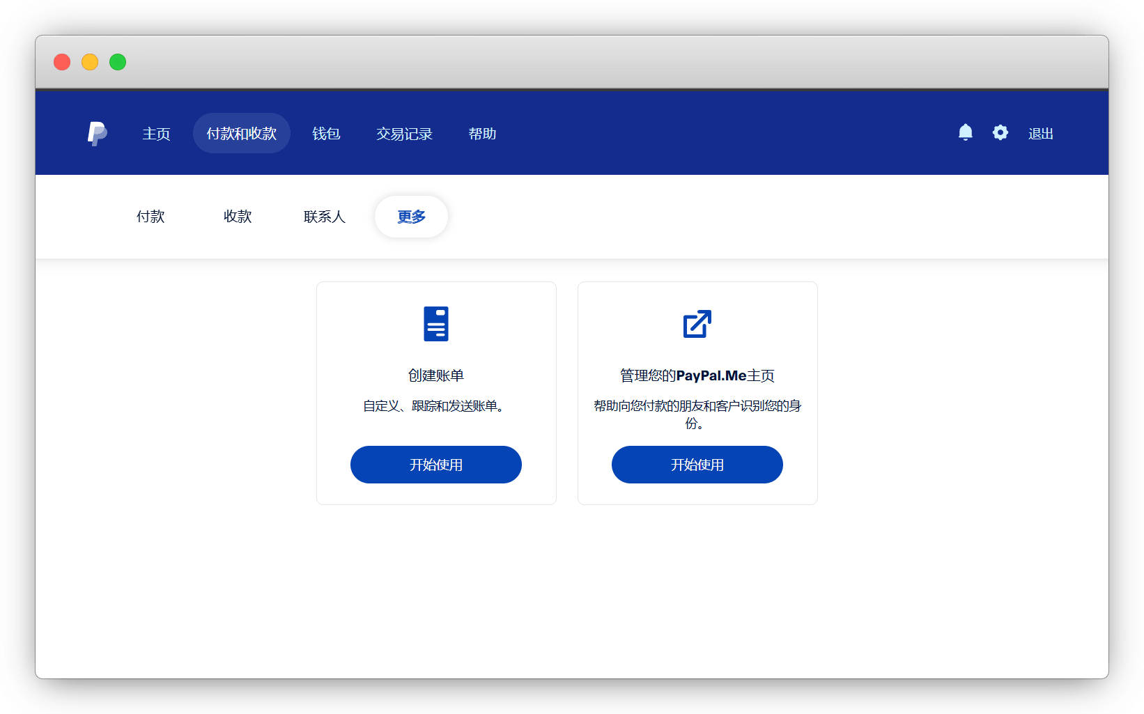 收款的话,在 收款和付款 - 更多 - 管理PayPal主页,设置一下你的用户名即可获取收款链接