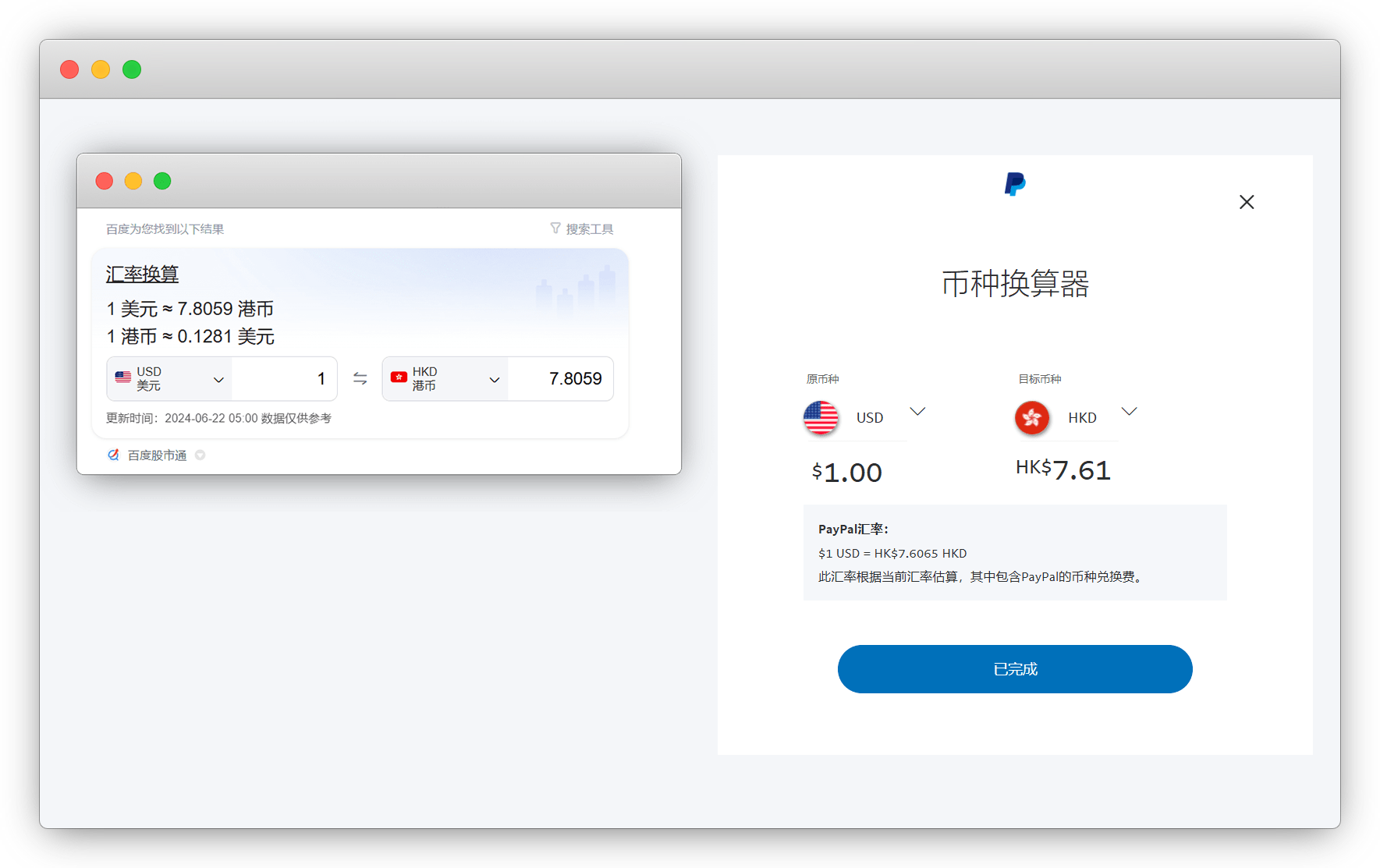有趣的是,百度查询当前的美元兑港币的汇率,PayPal竟然比较低
