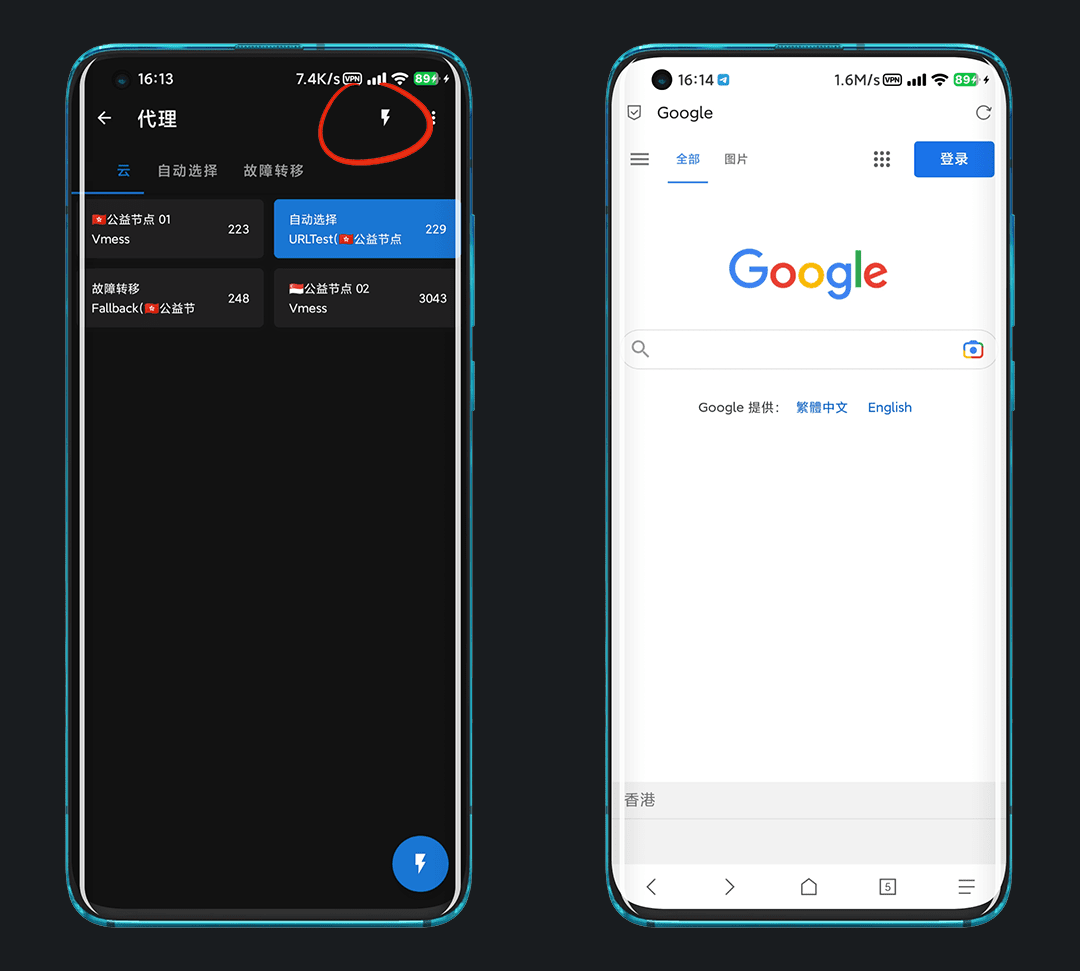 然后访问谷歌,成功即可,打不开说明节点不行,换机场