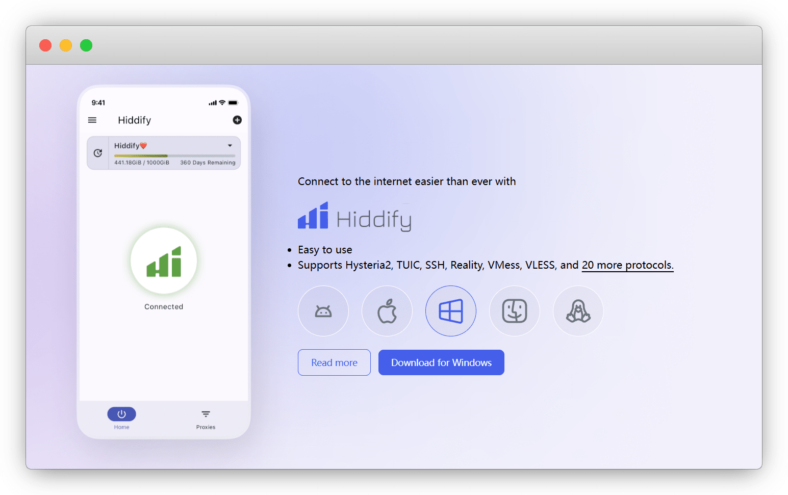 Hiddify是一款基于 Sing-box 通用代理工具