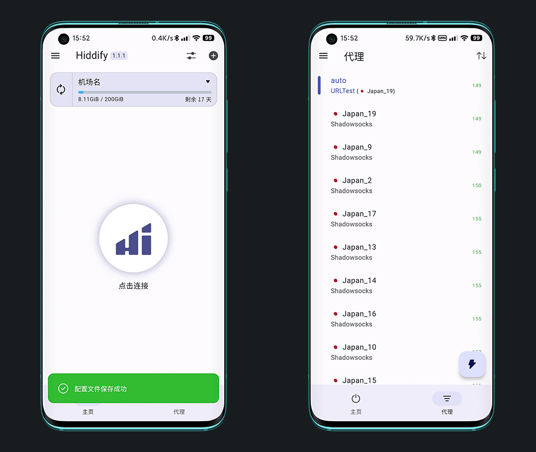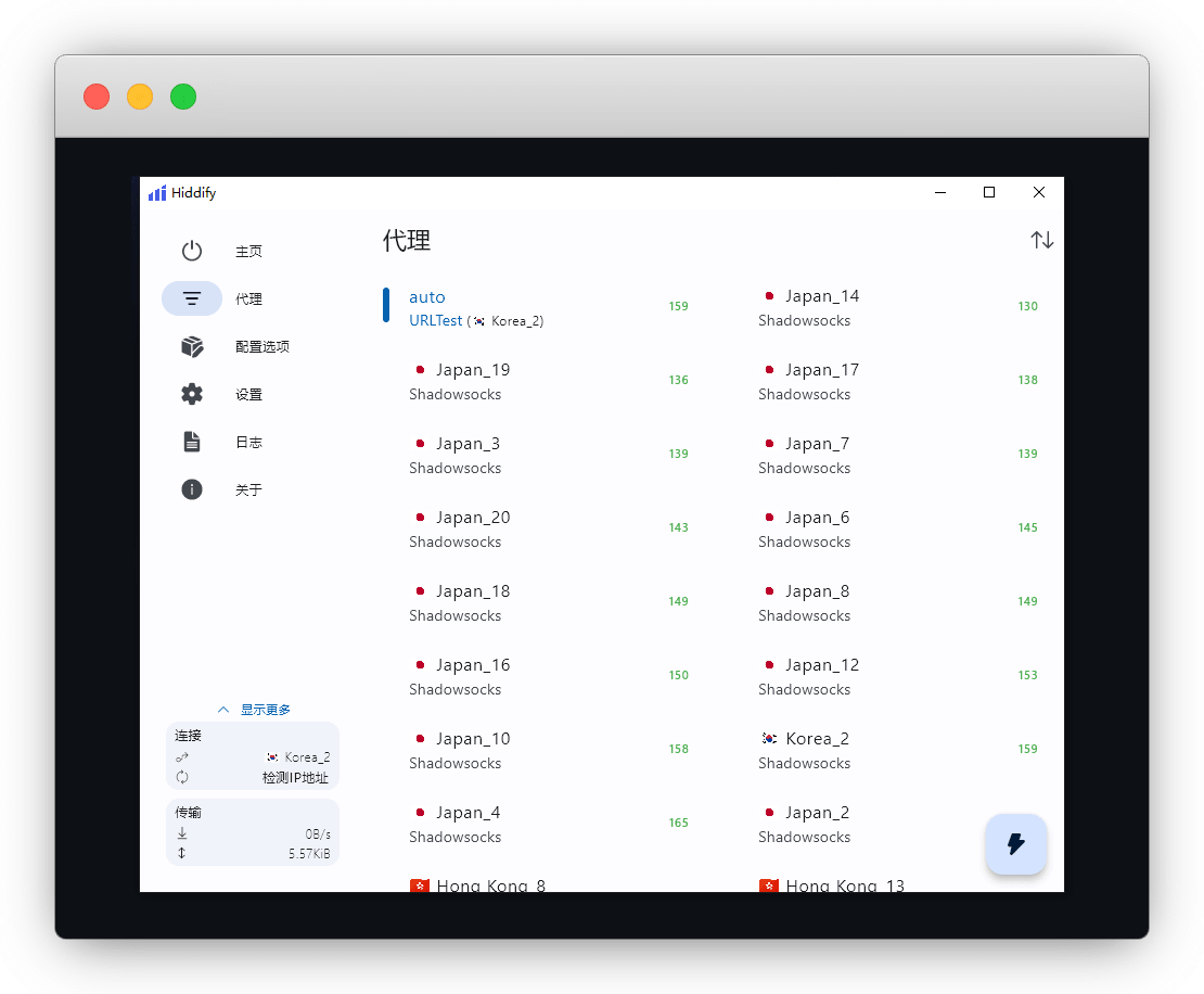 添加成功后,在代理中选择延迟低的