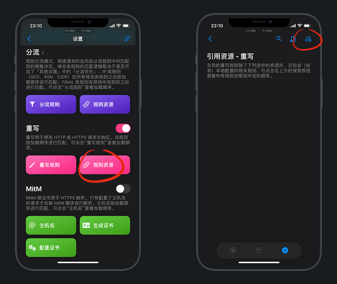 风车 > 重写 > 资源规则,右上角添加