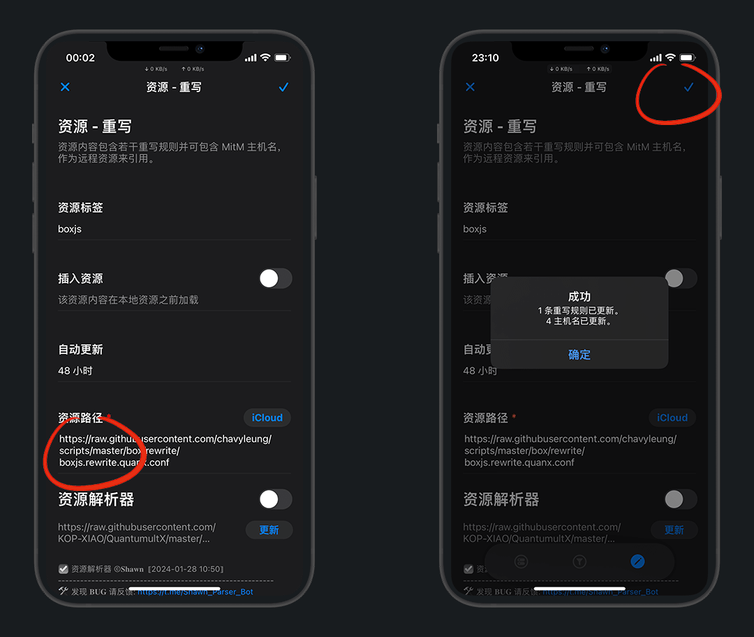 添加重写路径,标签:boxjs,资源路径如下,右上角保存