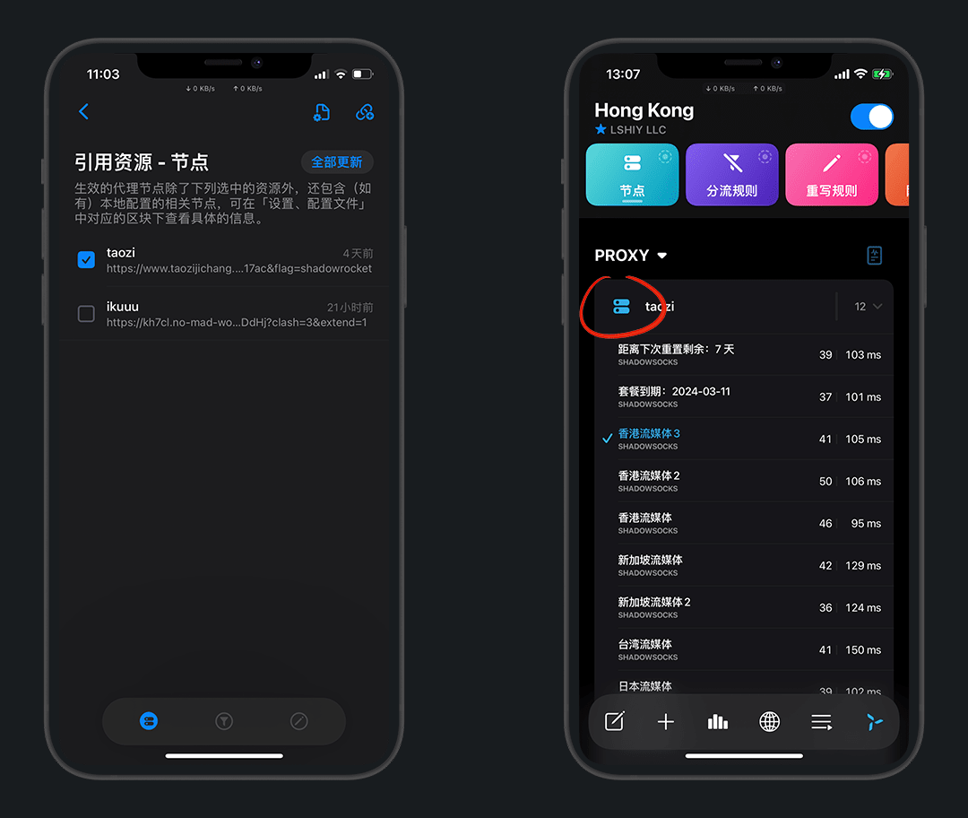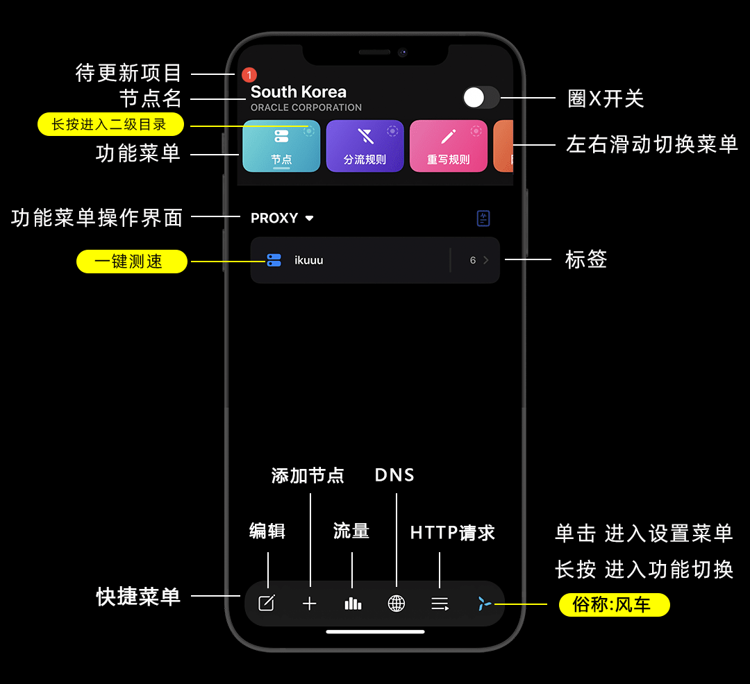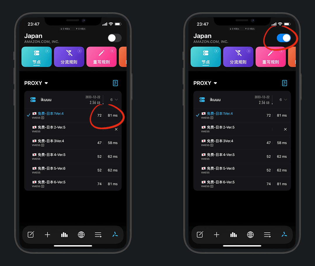 随便选一个速度可以的节点,打开圈X开关