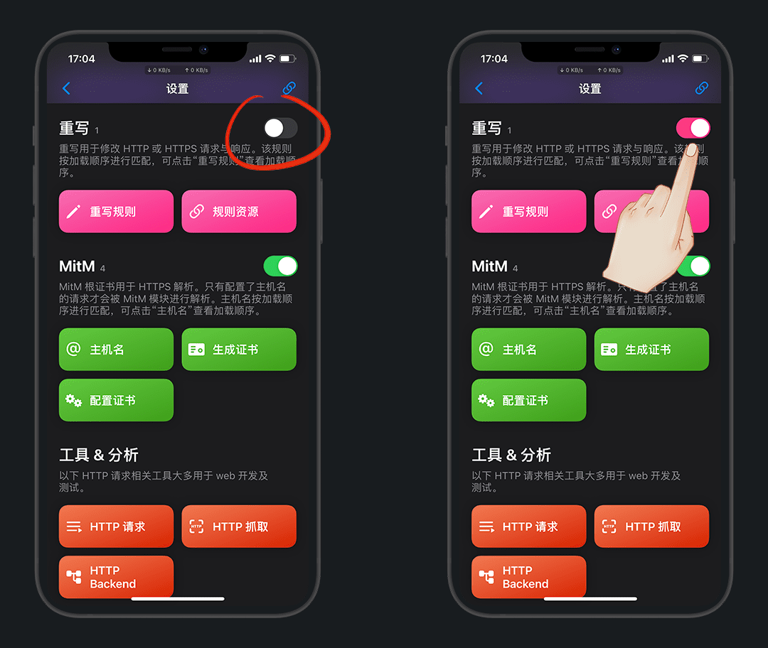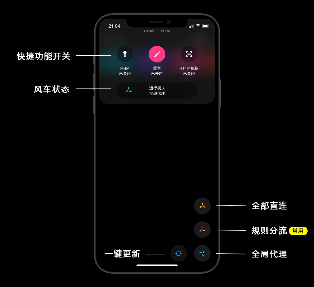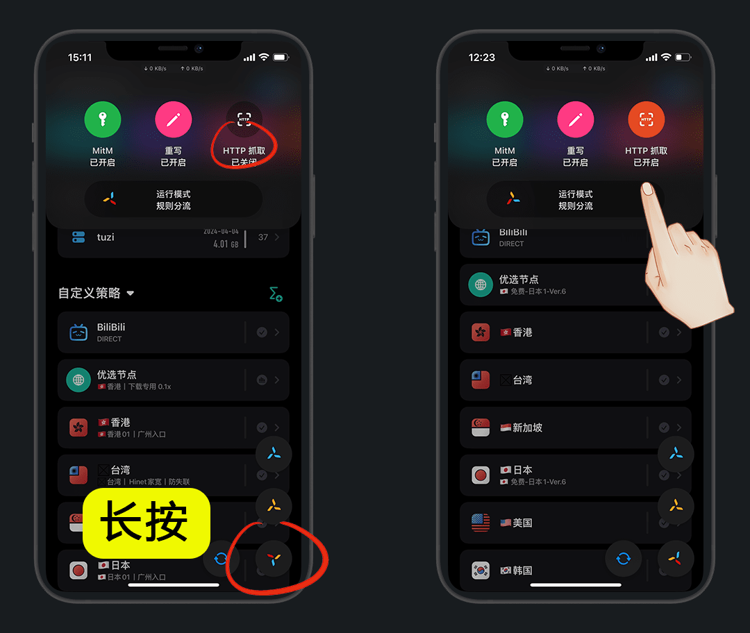 主界面长按风车,也可以快捷的开启抓包