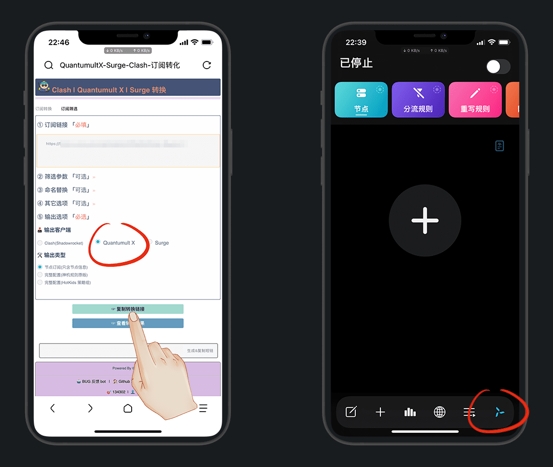点击 复制Clash订阅链接 会自动复制到剪切板,但是圈X不支持这种格式,需要转换