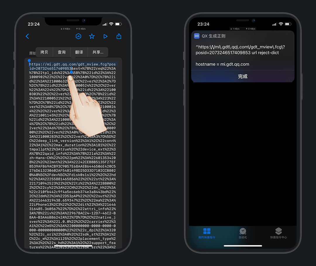 然后用 QX生成正则 丨 快捷指令 来正则匹配转换