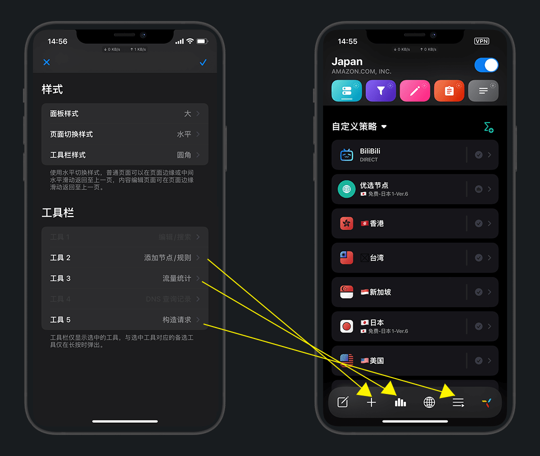 主界面左下角的 快捷栏 - 编辑 和 设置里的 配置文件 - 编辑 是一样的