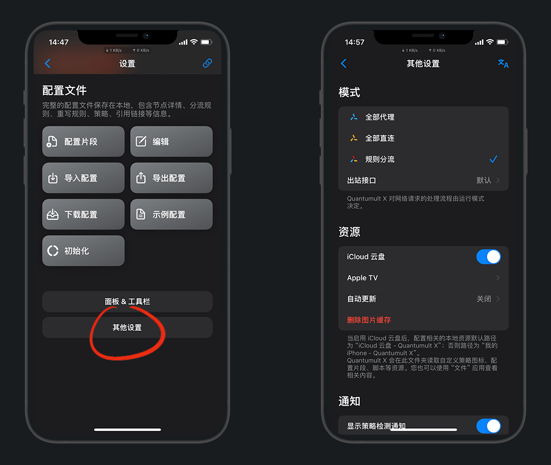 安装好后进入圈X - 右下角 风车 设置 - 拉倒底部 其他设置 - 拉倒底部