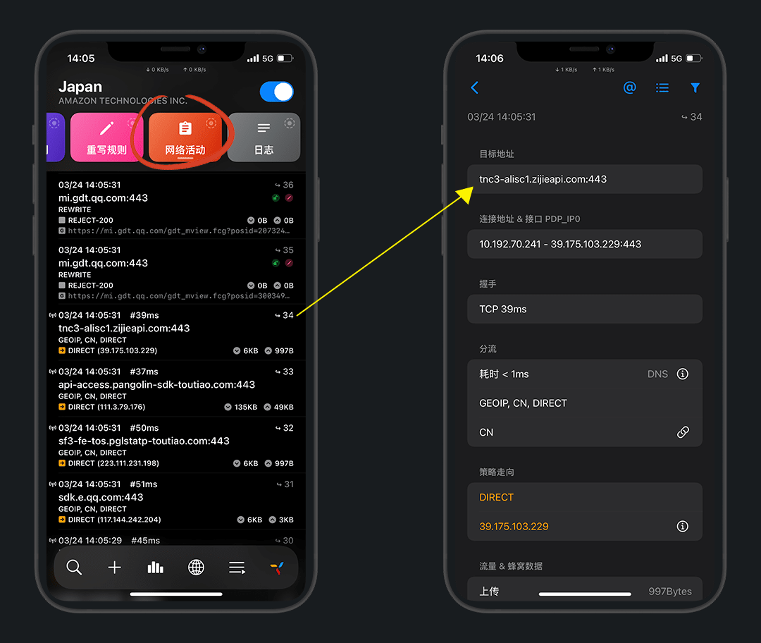 可以改变模式,建议分流;出站接口,默认使用WIFI,无WIFI后使用蜂窝