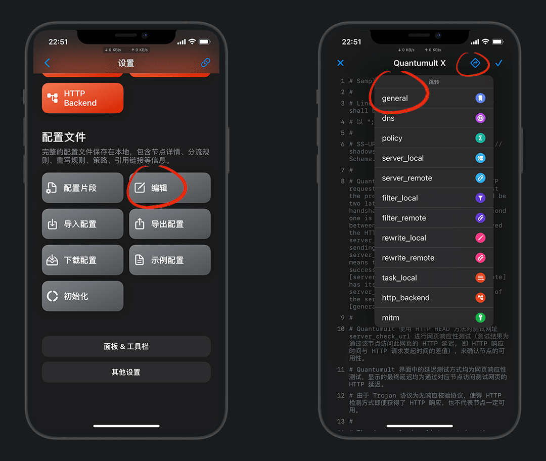 点风车-下拉到底部,配置文件-编辑,右上角箭头 选择 general