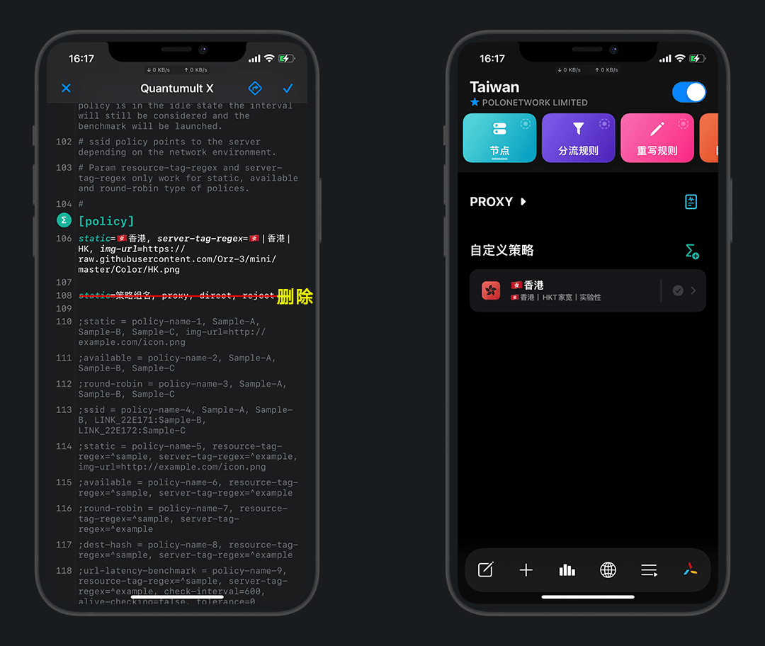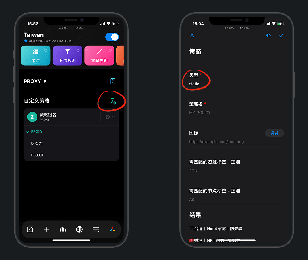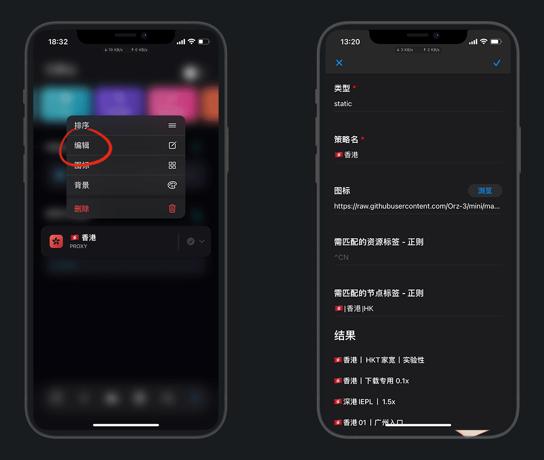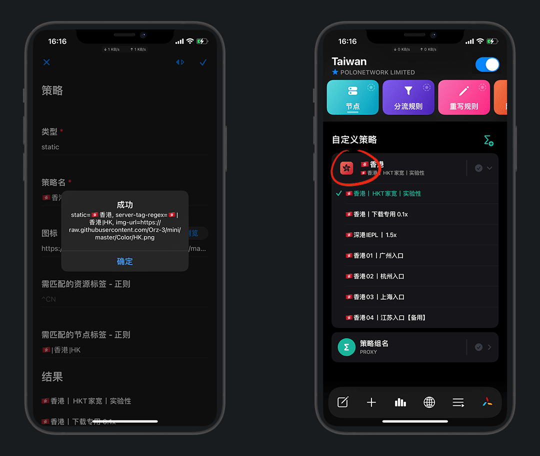 策略名:🇭🇰香港,这里的 🇭🇰 是 emoji旗帜表情 ,不是英文拼音