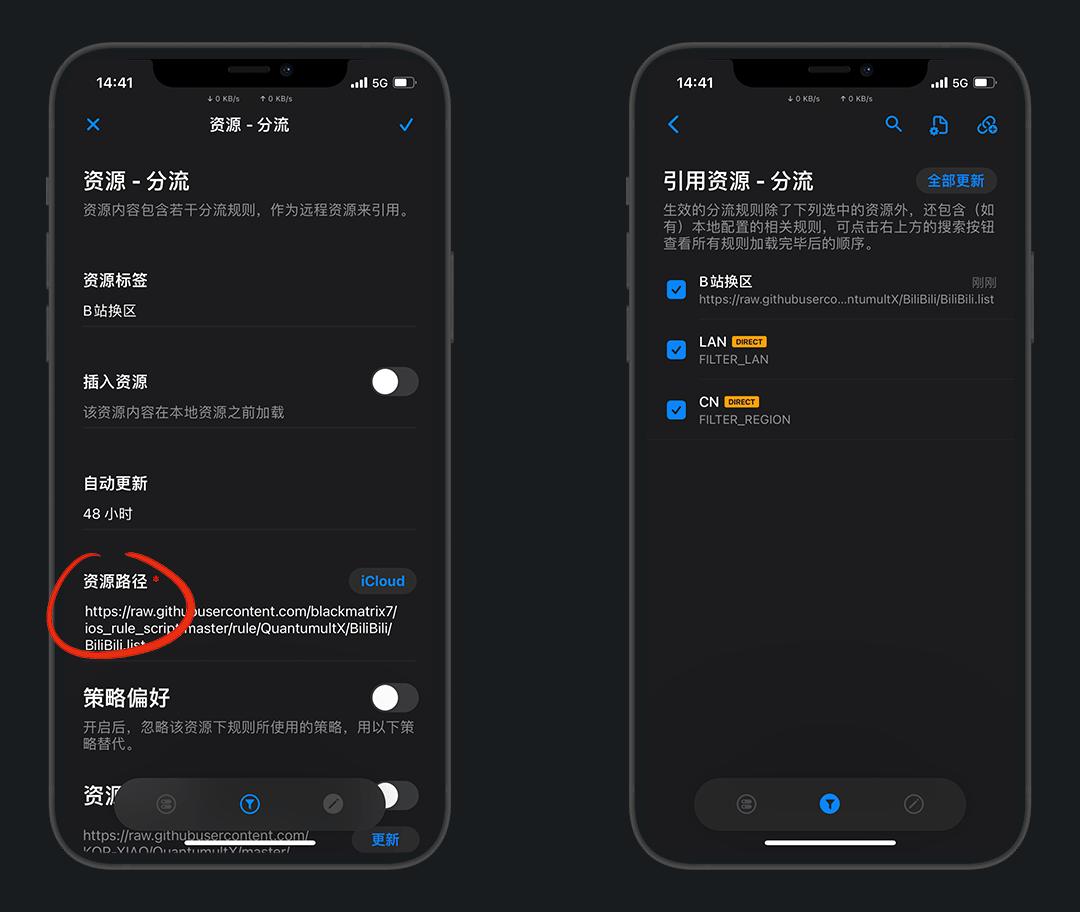 标签随便,资源路径填我们 刚转换的订阅链接 ,右上角保存即可