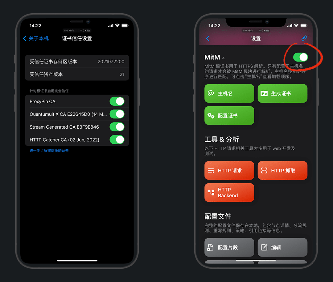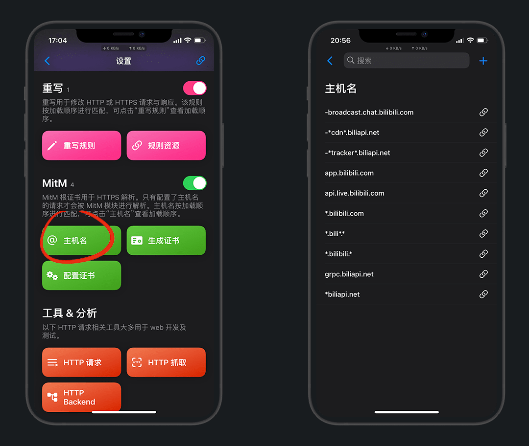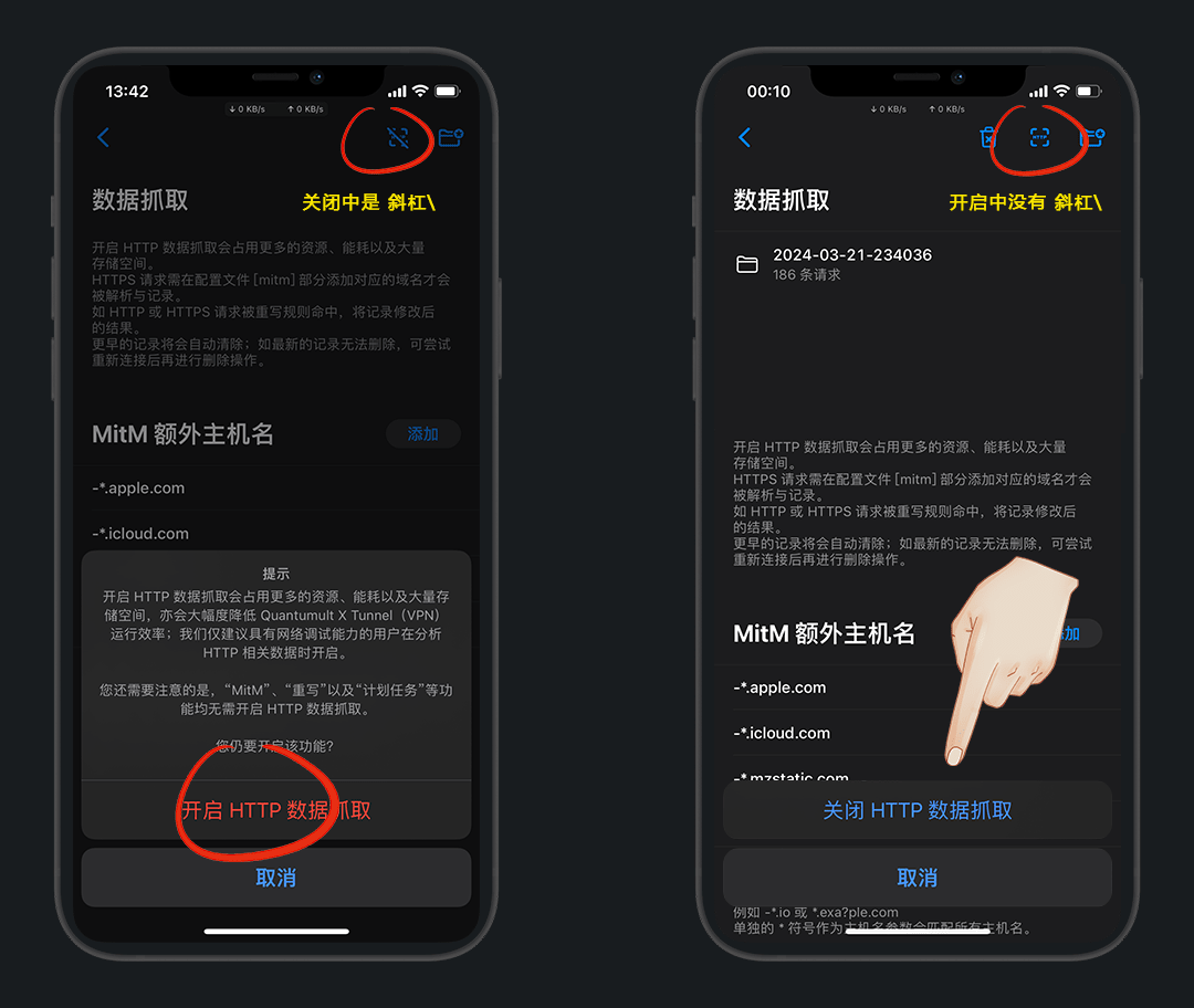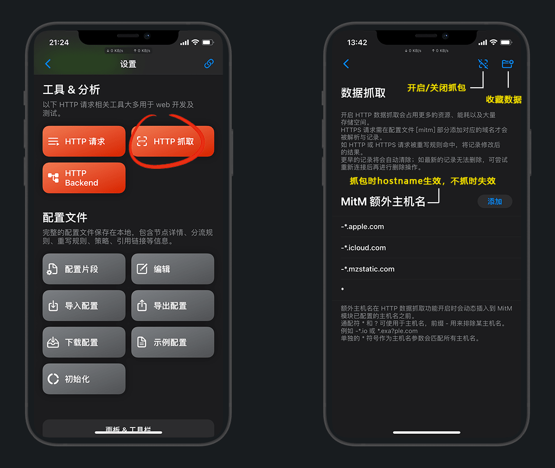 额外主机名:抓包时额外添加的MitM的hostname生效,关闭抓包时失效