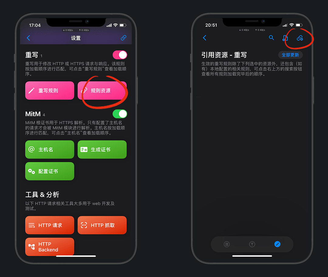 右上角第1个:开启 / 关闭抓包