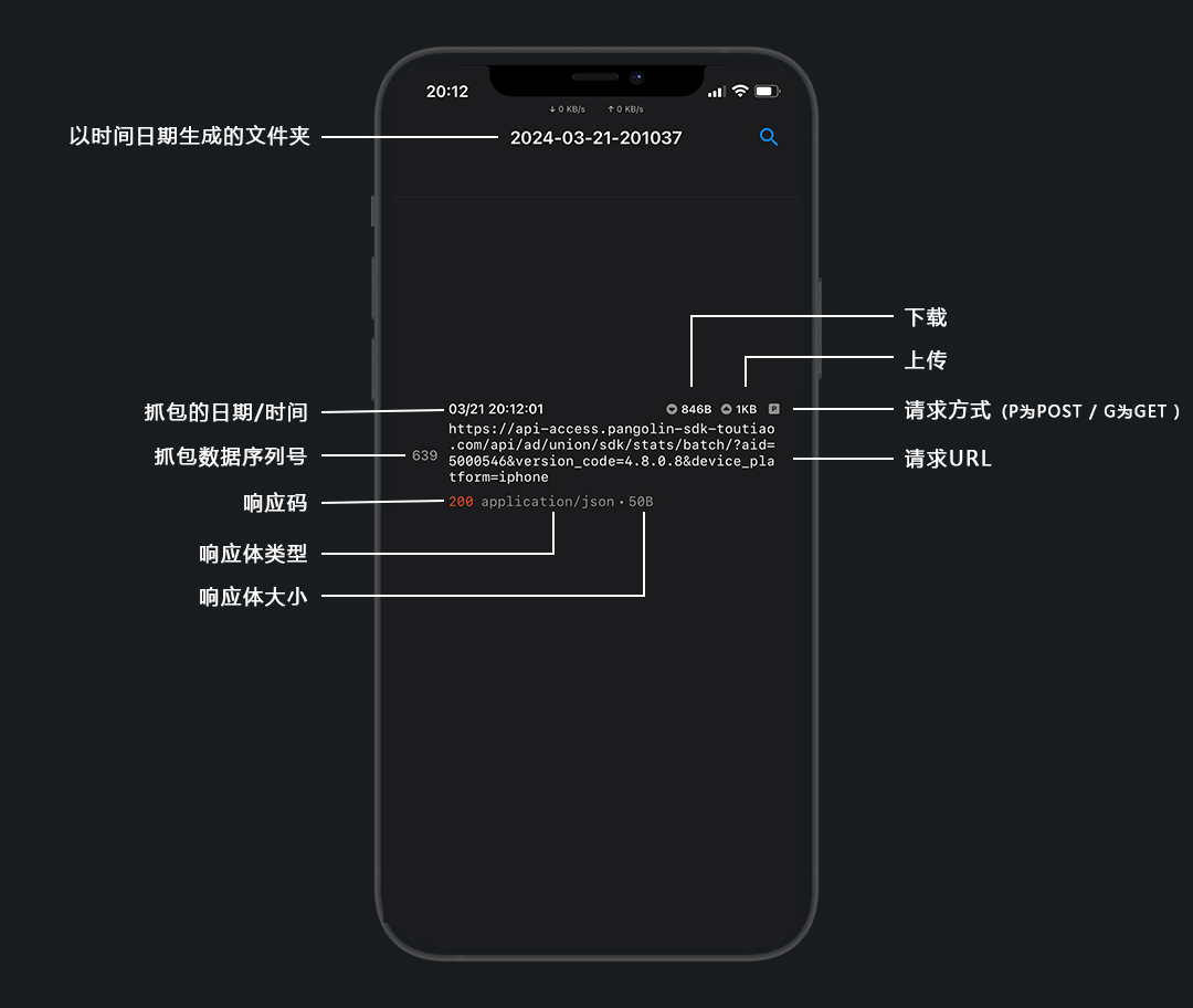 以及正常的网络连接状态,长按即进入抓包页面