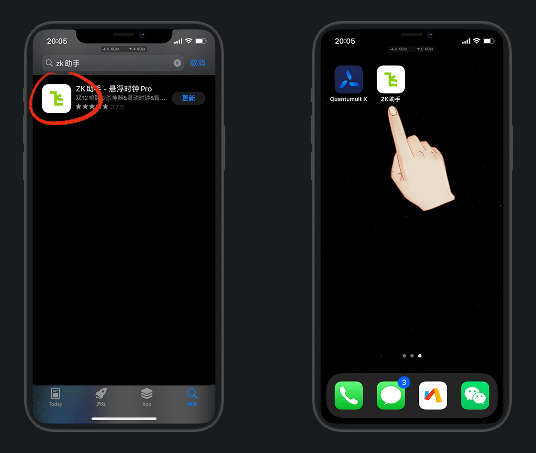 在AppStore下载 ZK助手 并安装