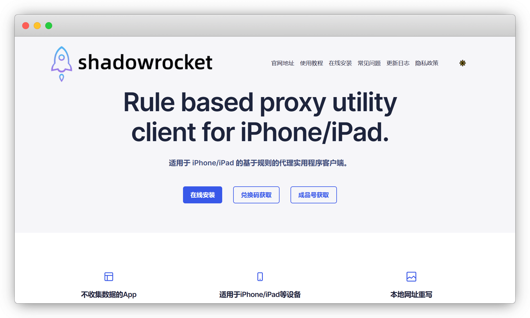 Shadowrocket著名的网络代理工具,直译暗影火箭,俗称来源于它的LOGO:小火箭