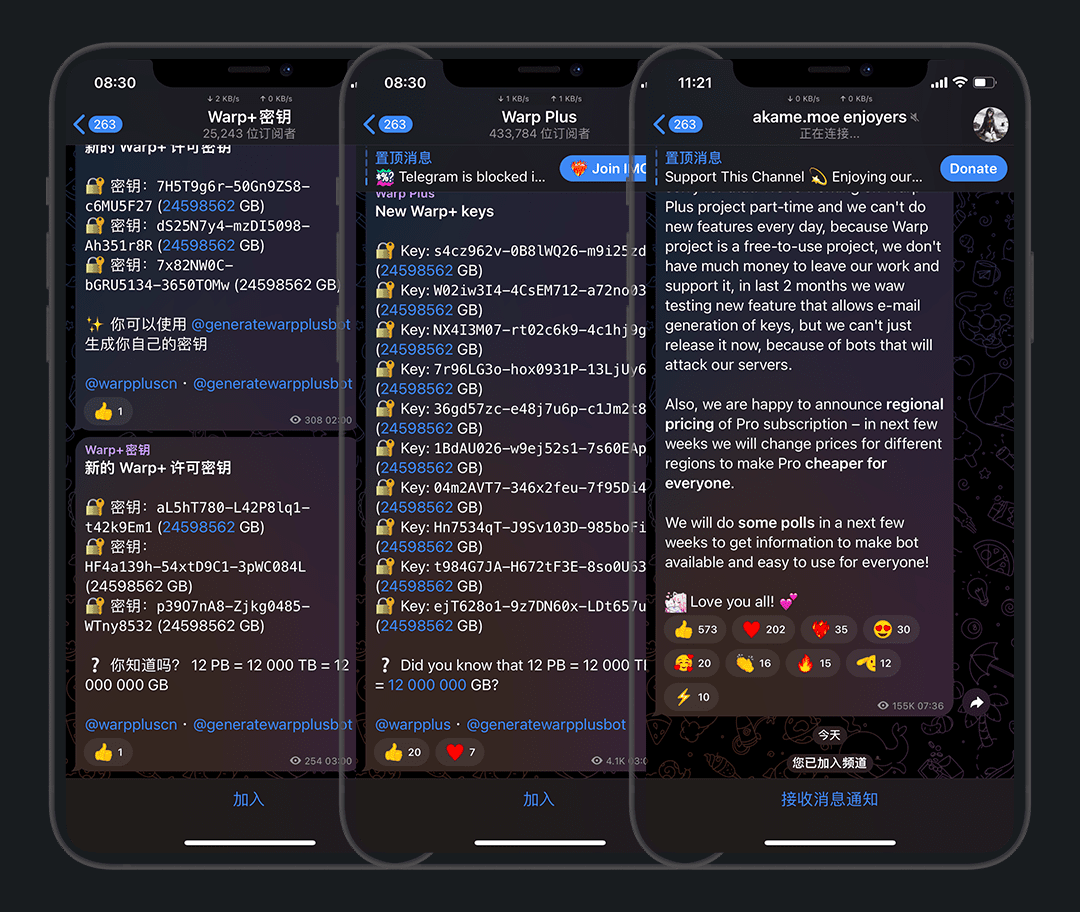 限制:每个密钥可同时在线5个设备;Tg群获取每24小时获取一次