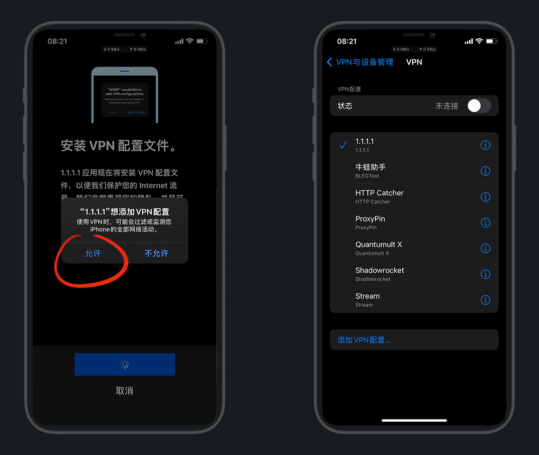 允许VPN配置,会自动跳设置中的VPN界面,然后跳回