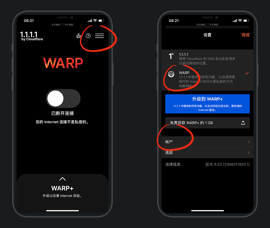 账户分为3种:warp、warp+、zero trust