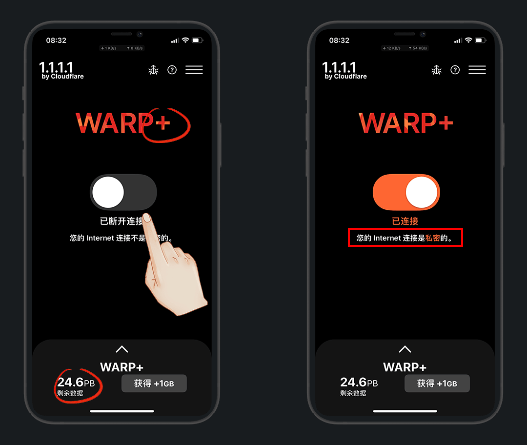 Warp+:付费订阅版,有限流量,可以隐藏源IP