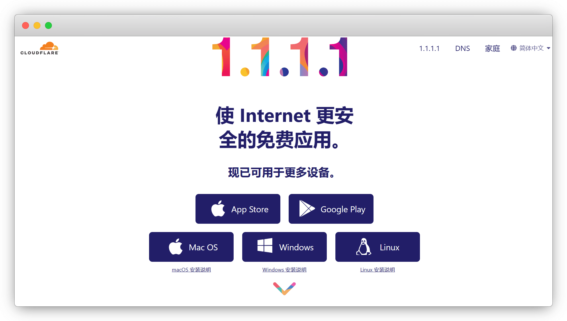 在 1.1.1.1官网 下载完成点安装