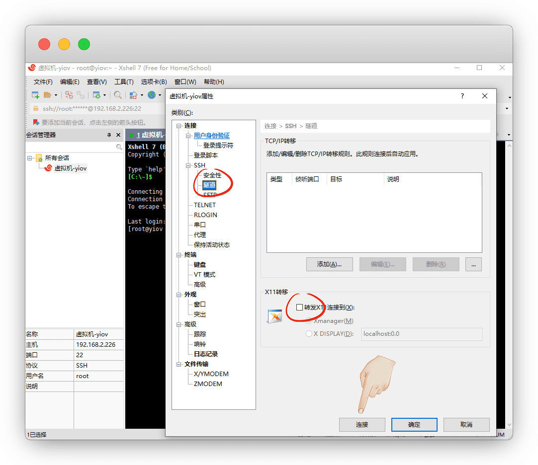 对着服务器右键 属性 - 隧道 - 取消勾选 转发X11连接到,再点连接,确保重新连接后生效