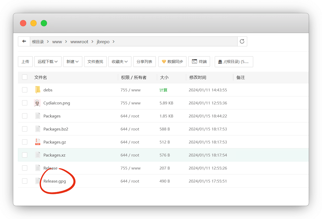 └─ Release文件 - 根目录/www/wwwroot ,新建一个 jbrepo 文件夹