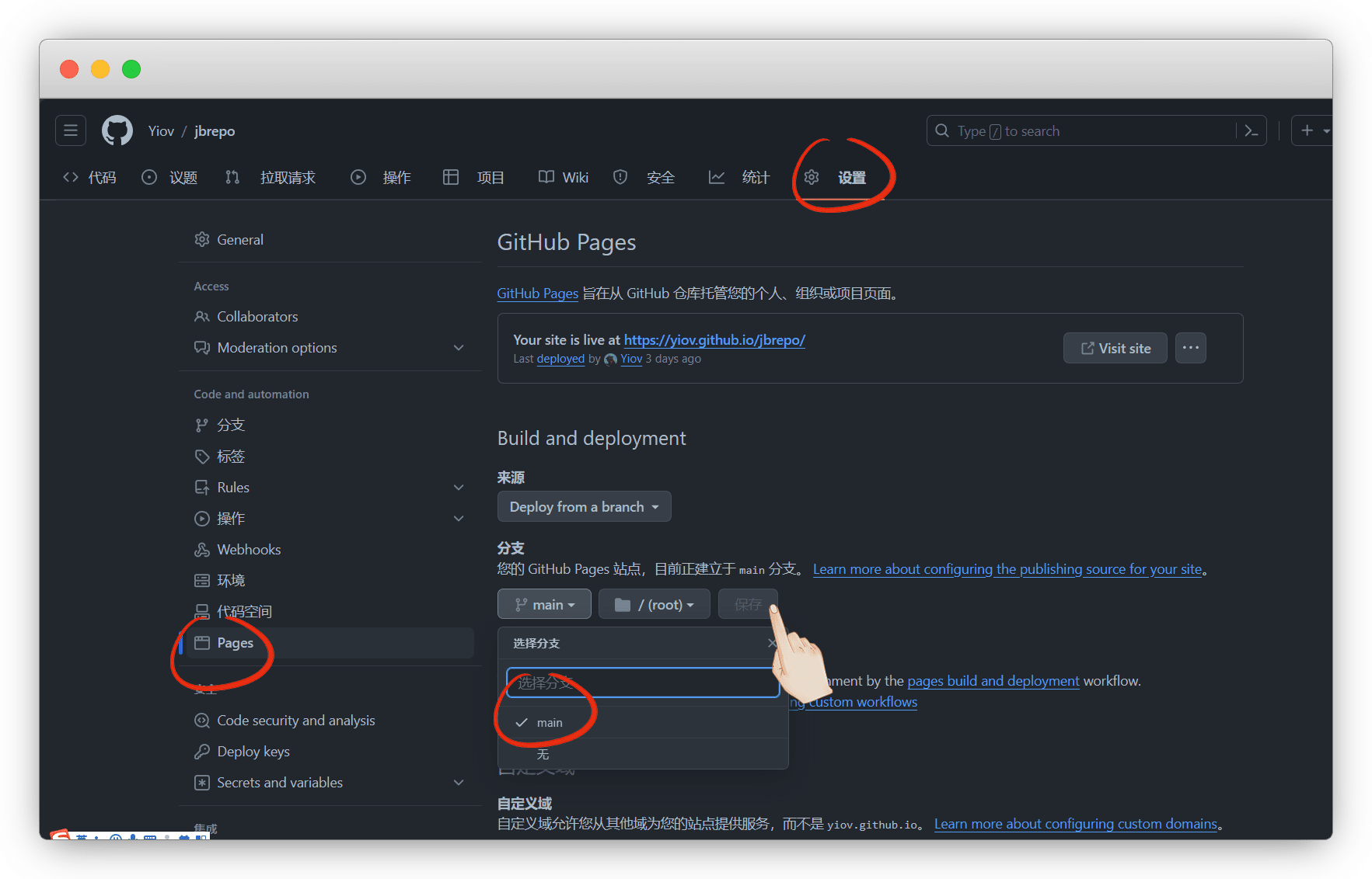 如果你弄了主页,就在设置中将 Github Page 开启