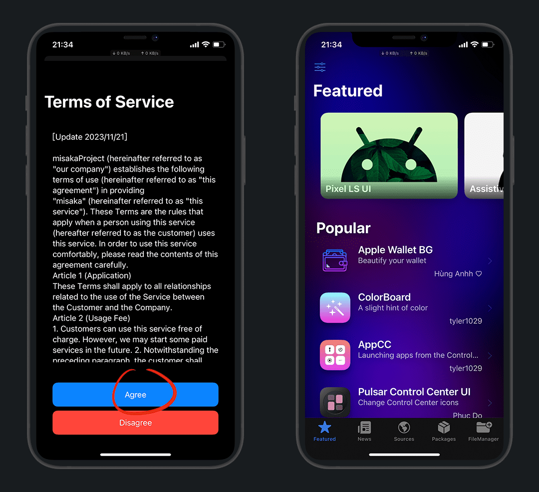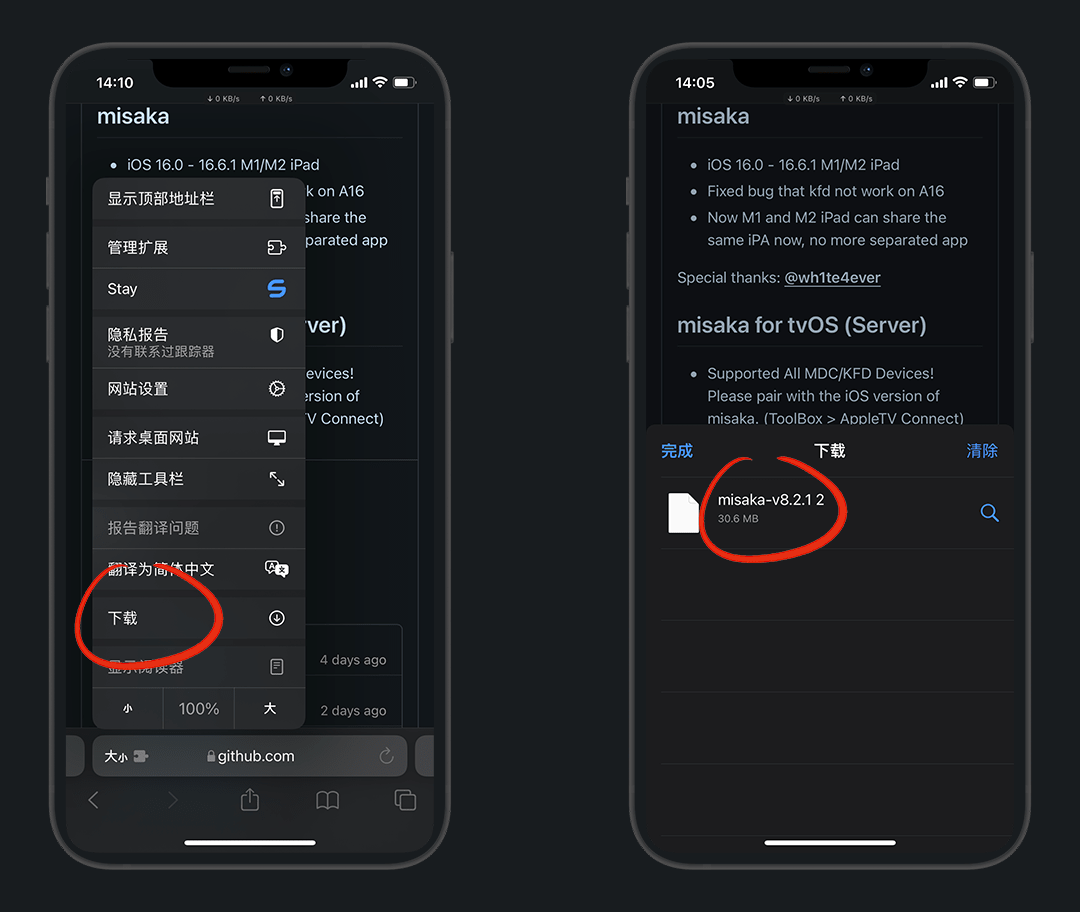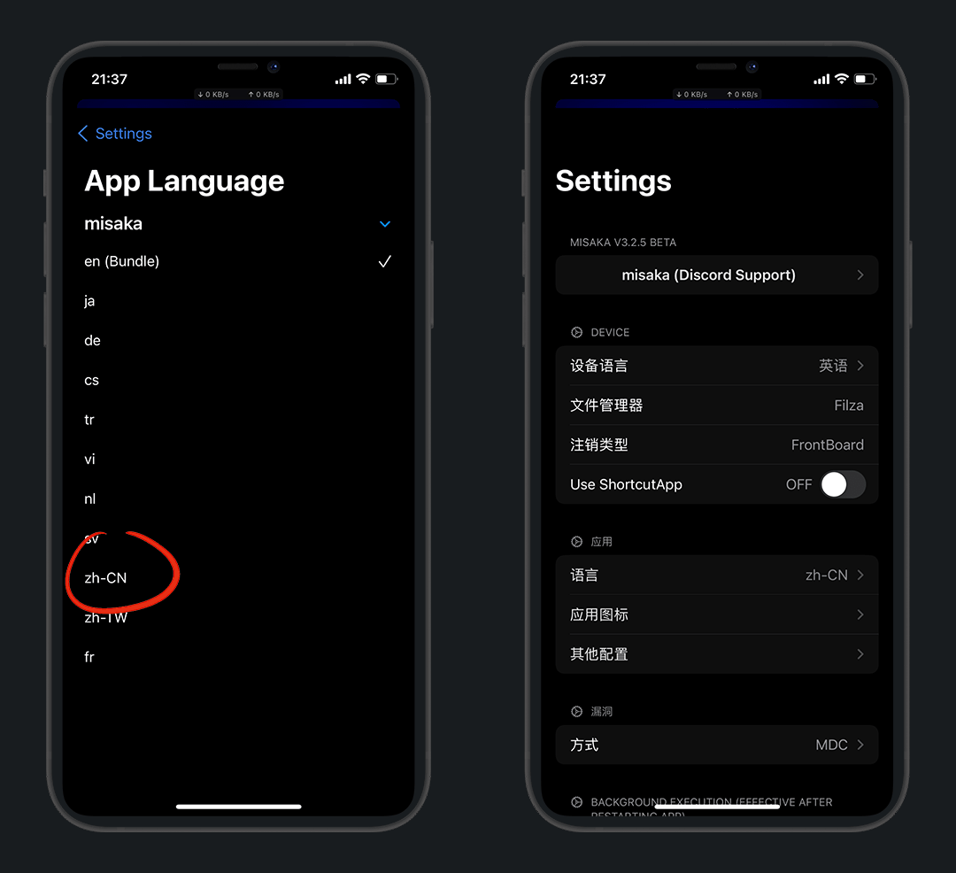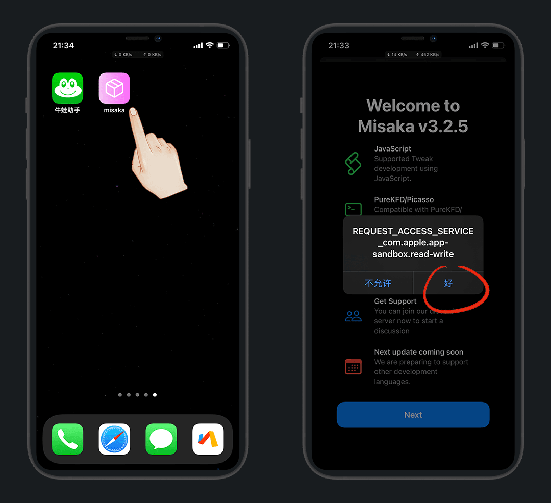我用 misaka 软件演示,misaka是一款利用MDC/KFD漏洞开发的工具
