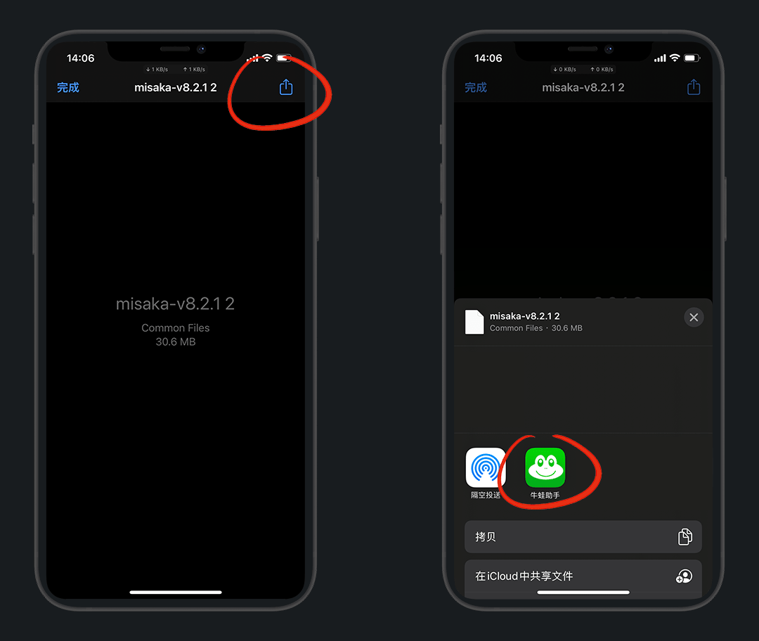 如果勿点了取消,也可直接点 misaka.ipa 选择导入应用库