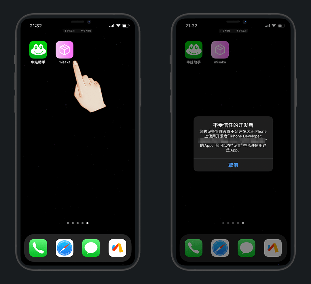 misaka就安装成功了,但是还打不开,要信任一下