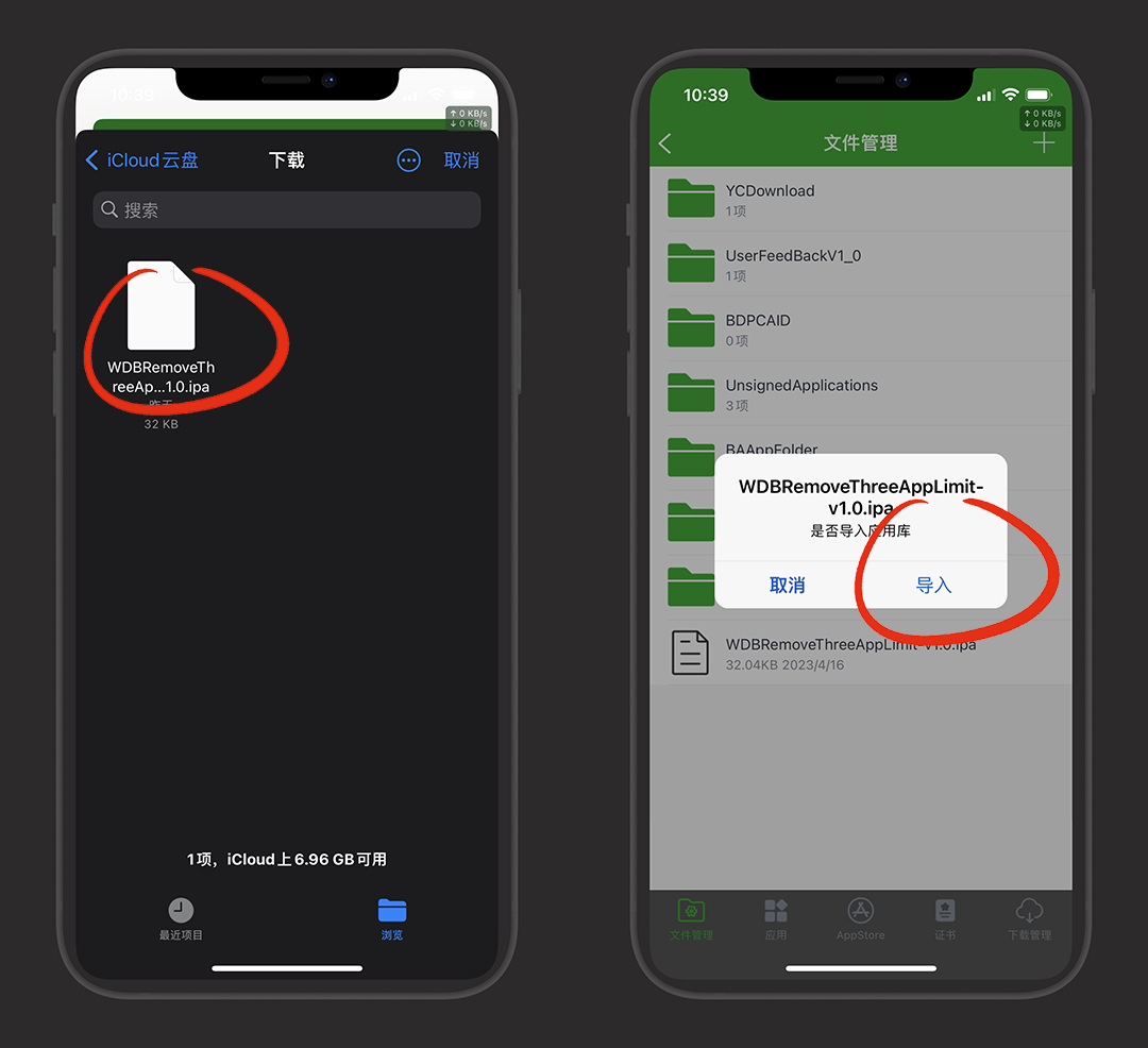 选择刚下载好的 WDBRemoveThreeAppLimit,并导入应用库