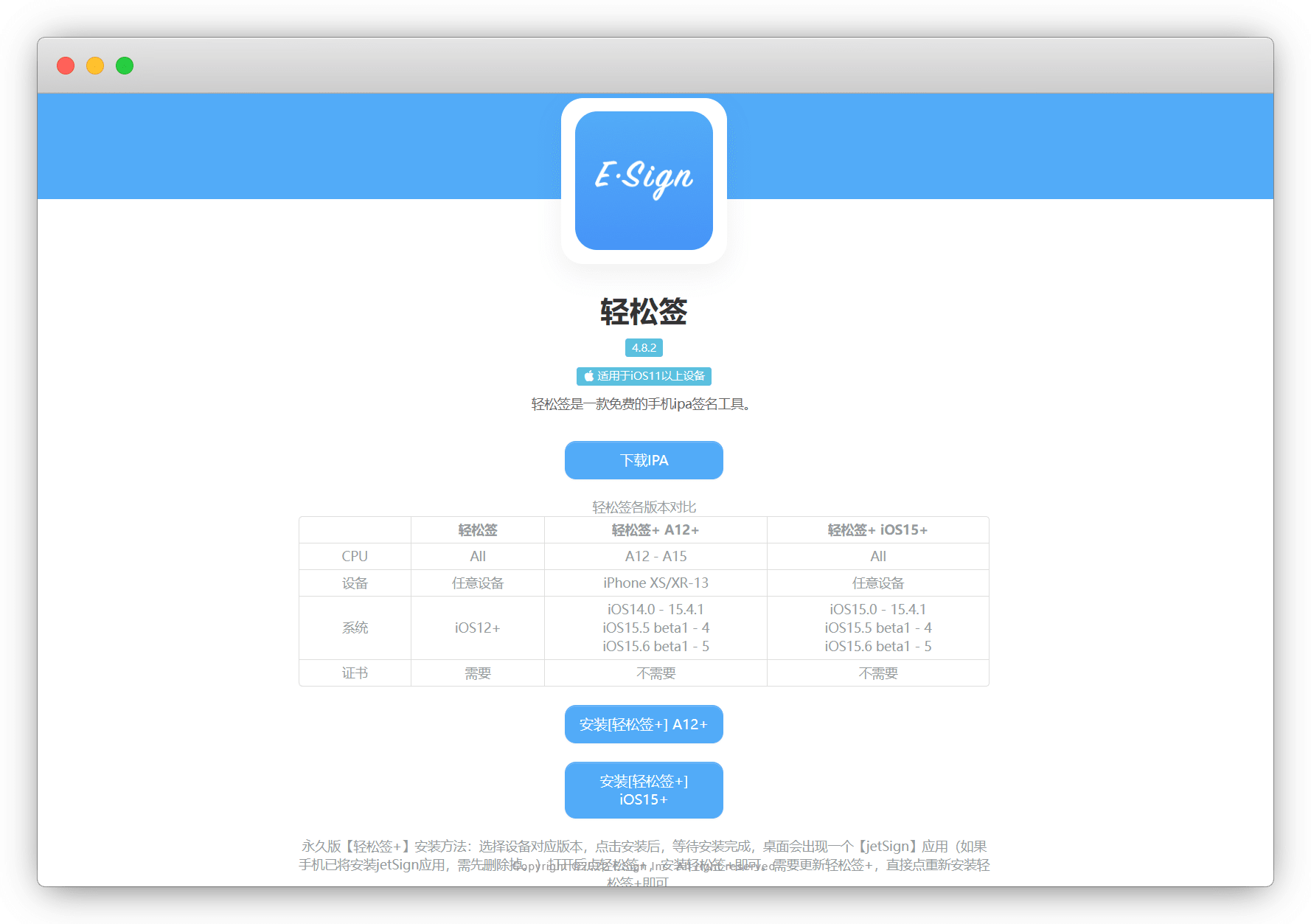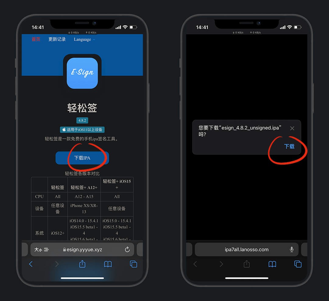 在 轻松签官网 下载ipa