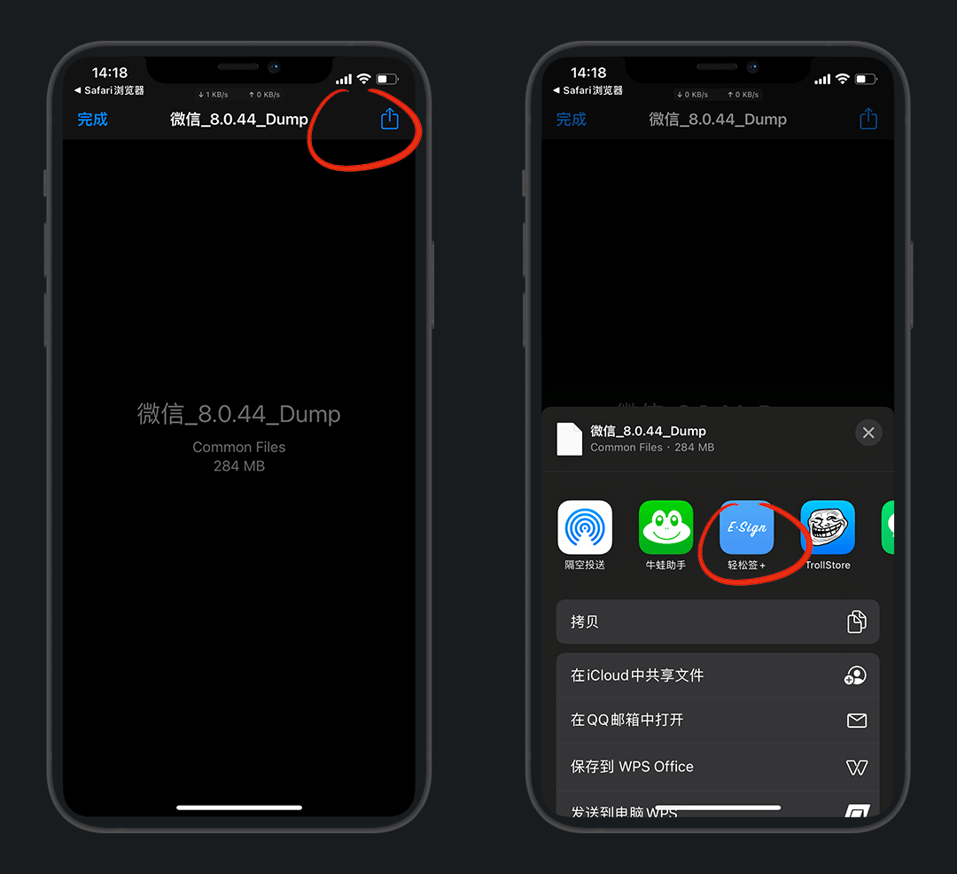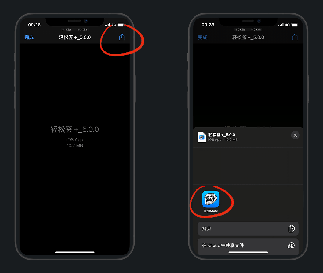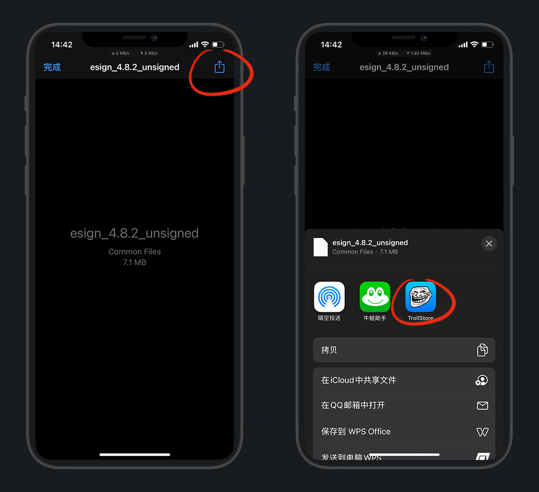 右上角分享 - 用 巨魔 打开安装