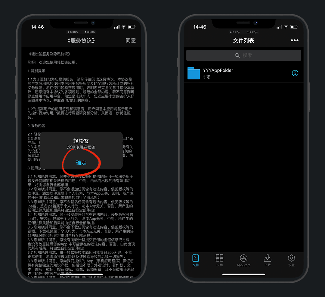 由于轻松签本身也需要签名后才能安装,那就需要证书