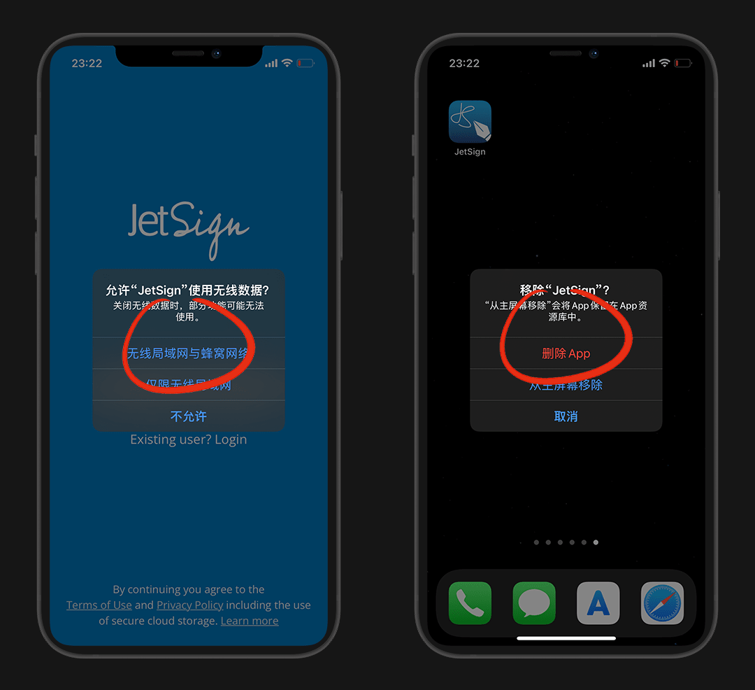 打开app,允许 无限局域网与蜂窝网络 ,然后我们直接卸载