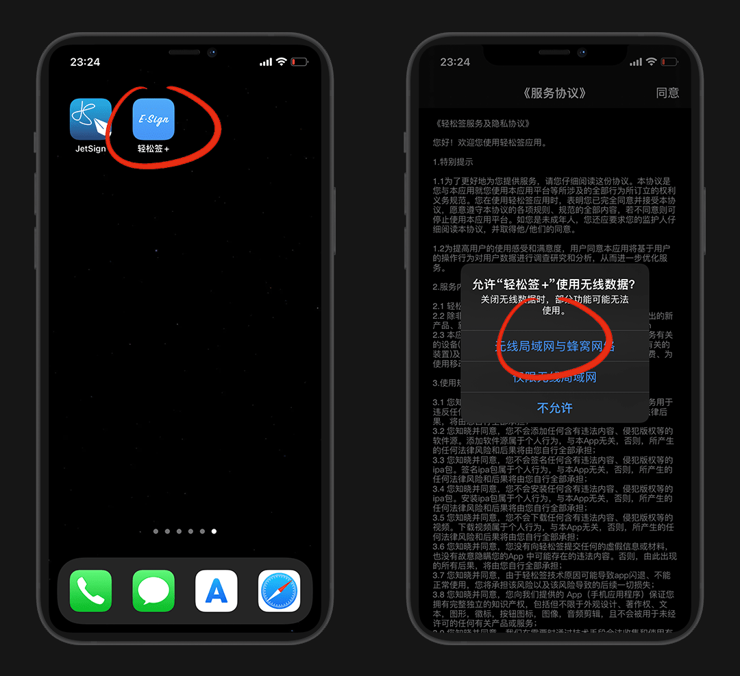 打开轻松签+,允许 无限局域网与蜂窝网络 ,就可以使用了